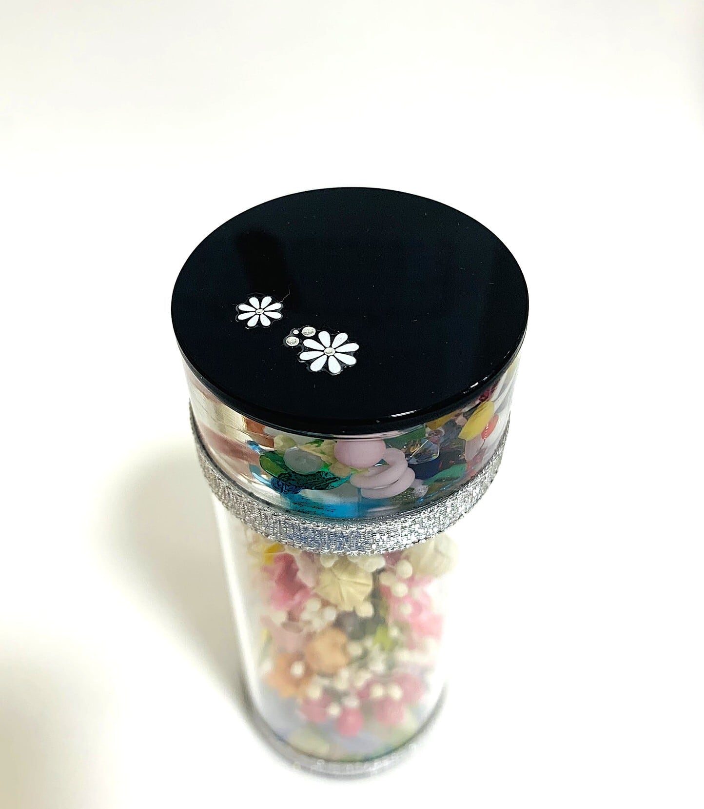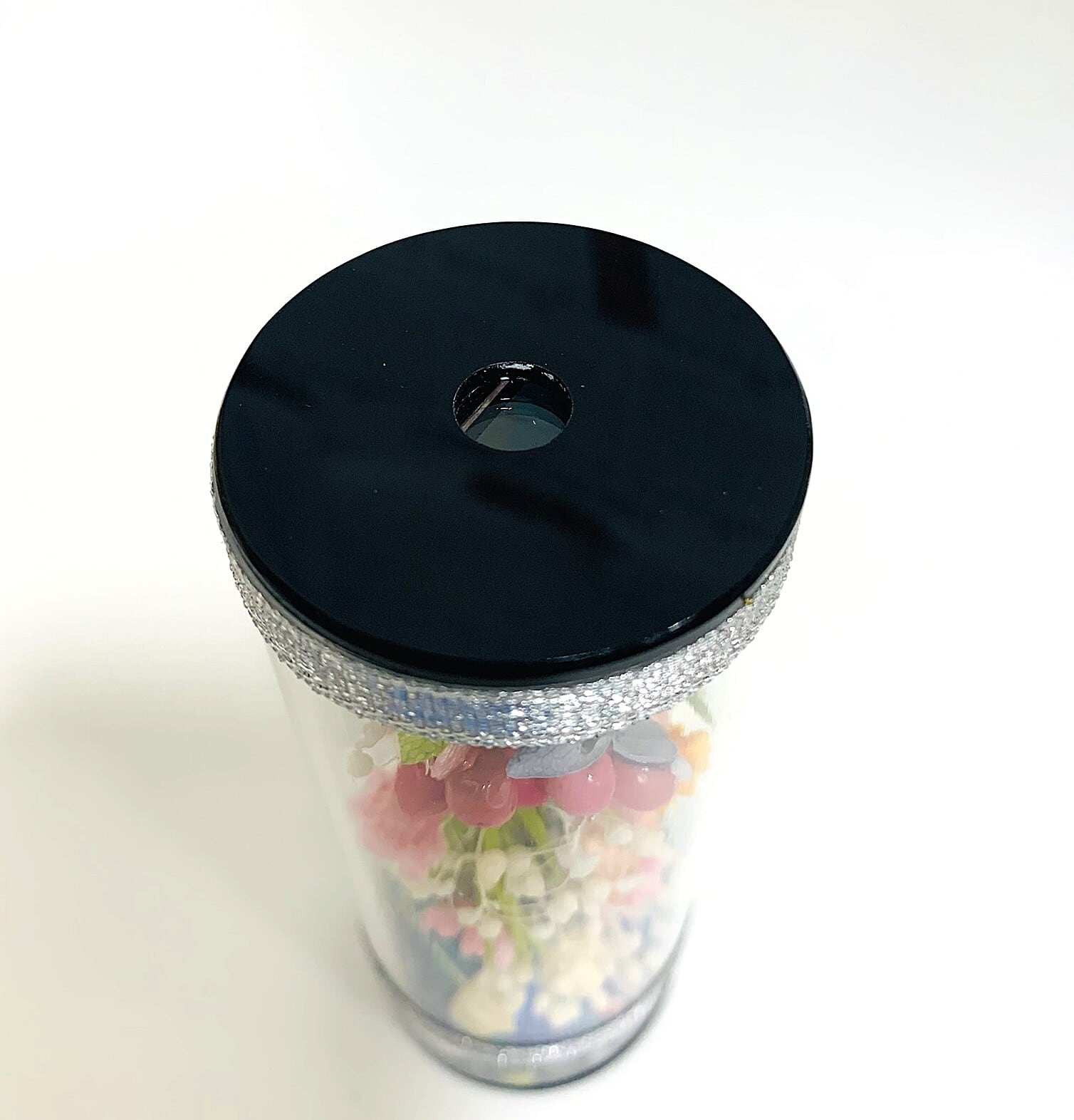 筒部分には透明なアクリル板の下にプリザーブドフラワー