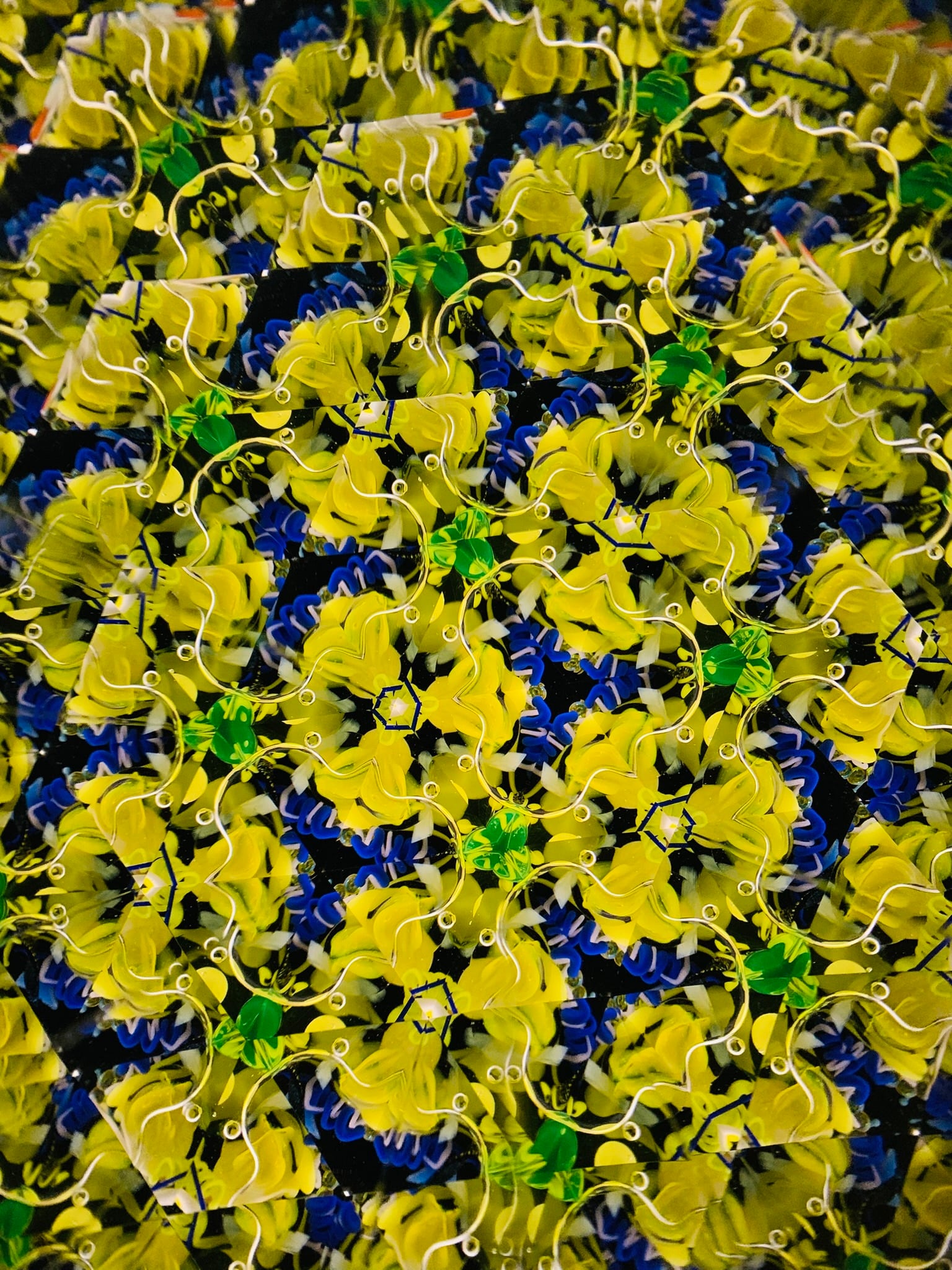 万華鏡内部は鮮やかな黄色をメインに青やオレンジ、水色