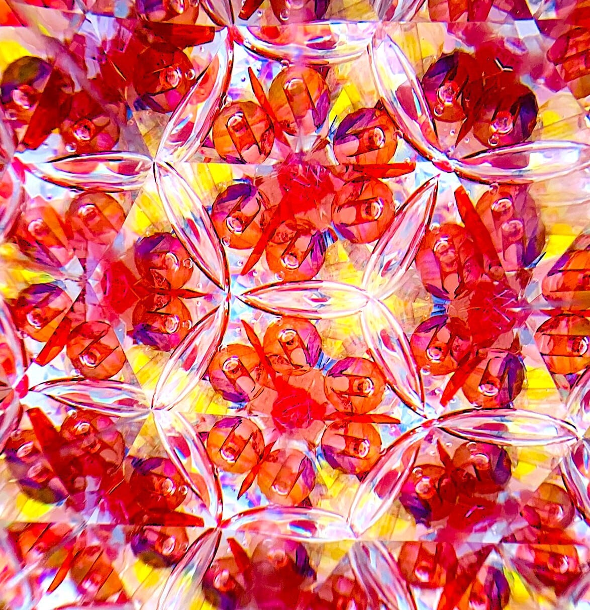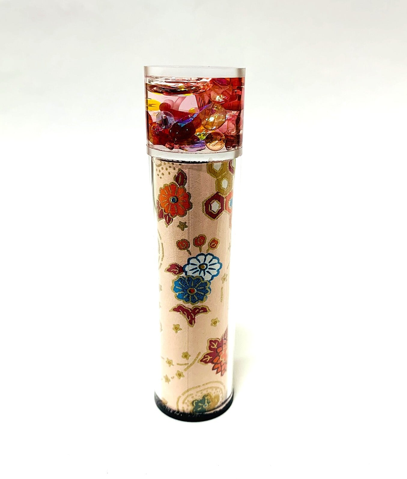 万華鏡内部もピンクや赤を中心に模様がキラキラと
