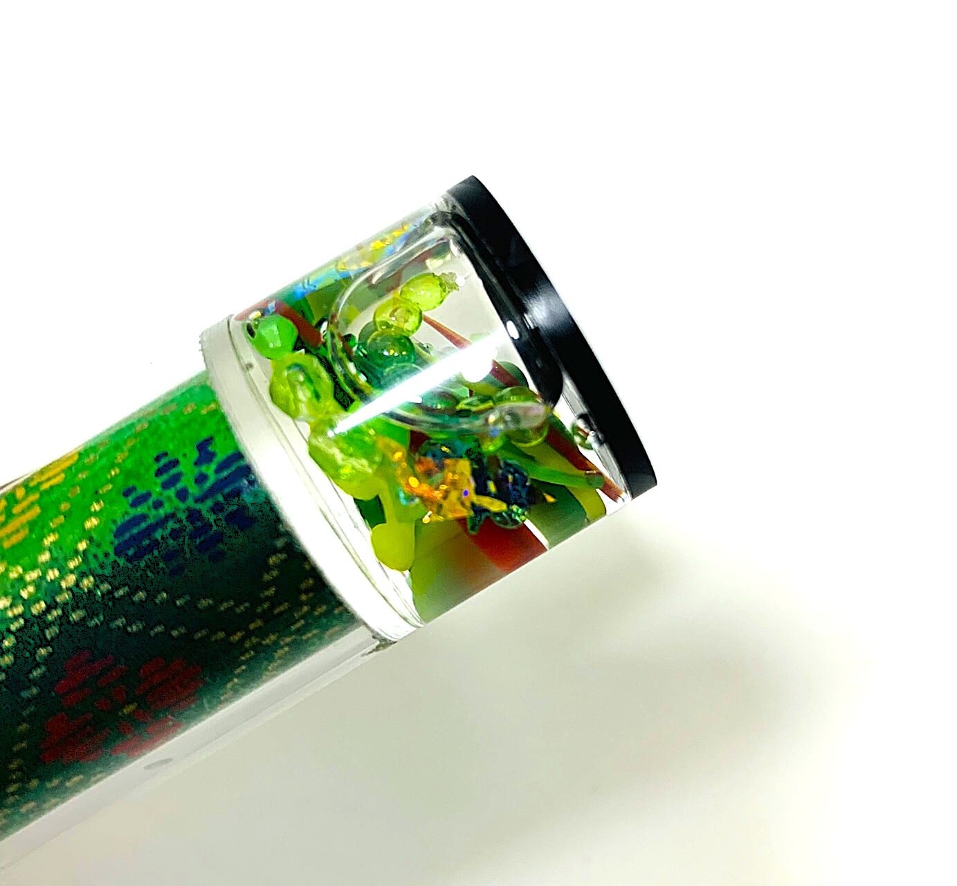 入り模様がキラキラと変わっていくとっても華やかな万華鏡です。