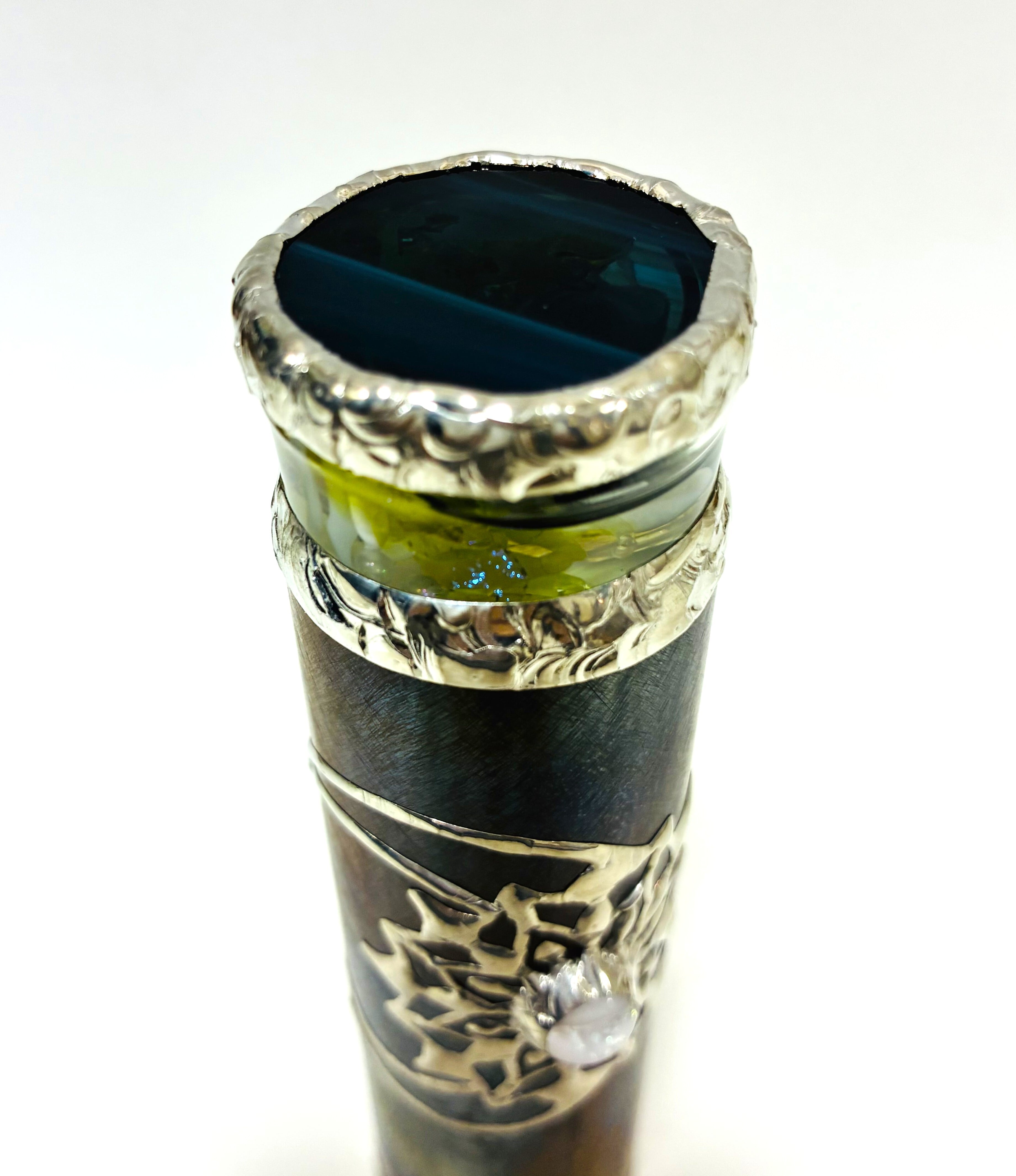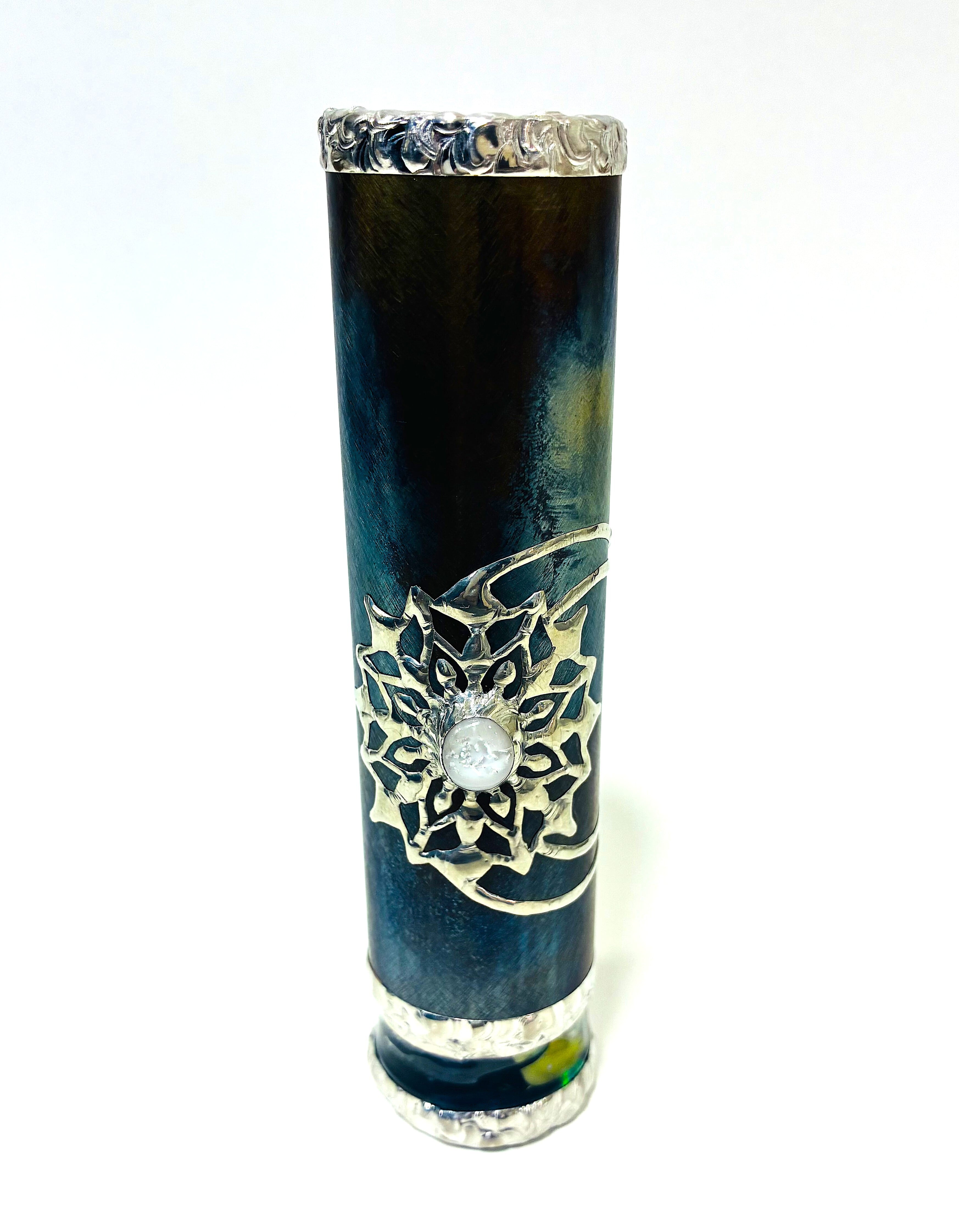 ボディは真鍮でできており、月と華の模様がハンダで丁寧に施されています。