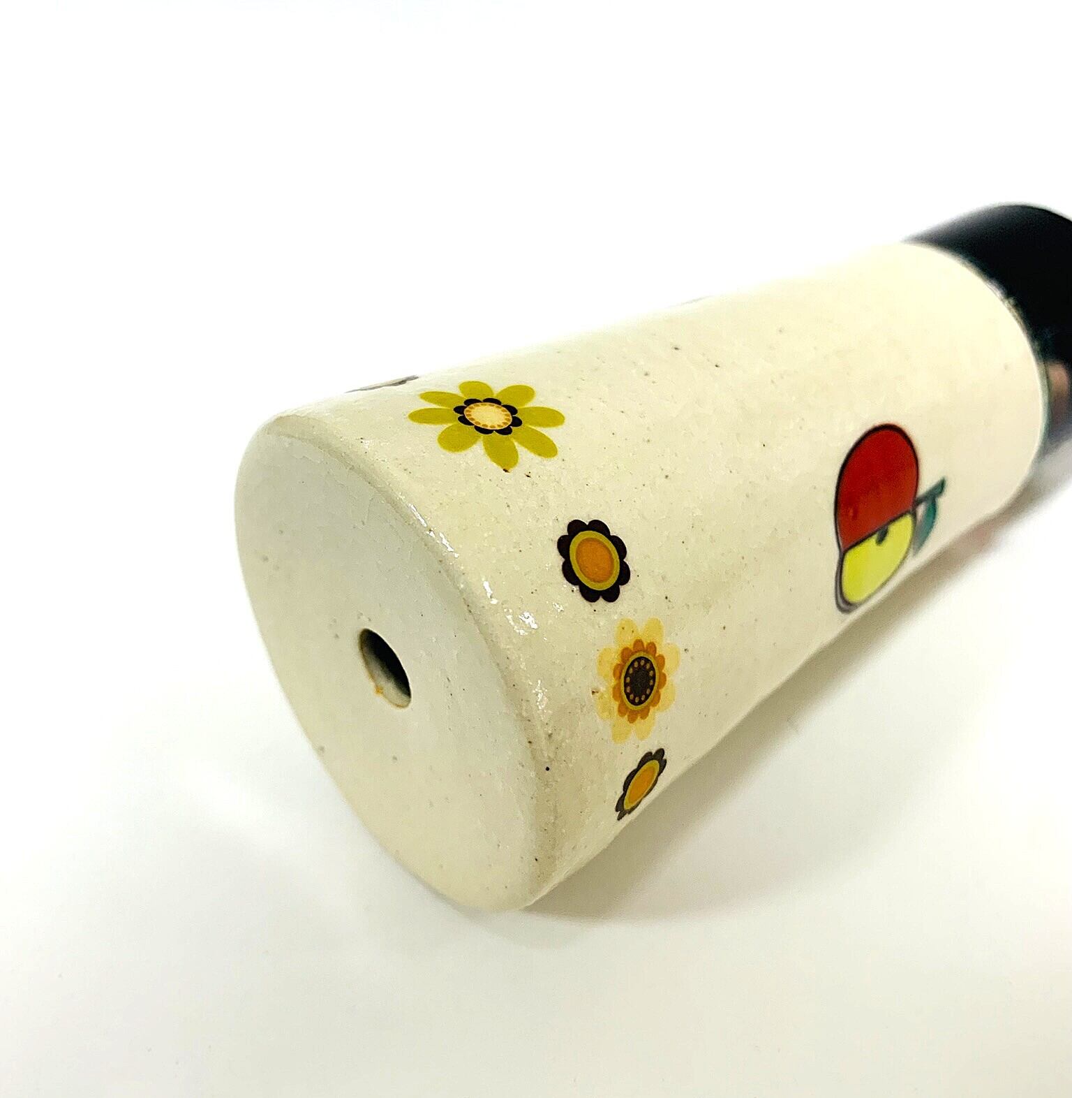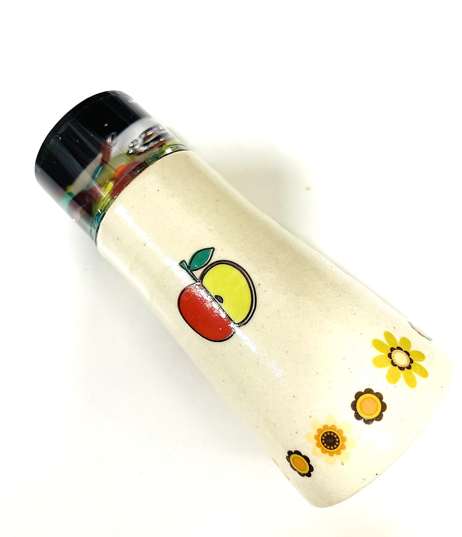 丁寧に作られた陶器のボディは、懐かしい昭和レトロ風のりんご柄が施され