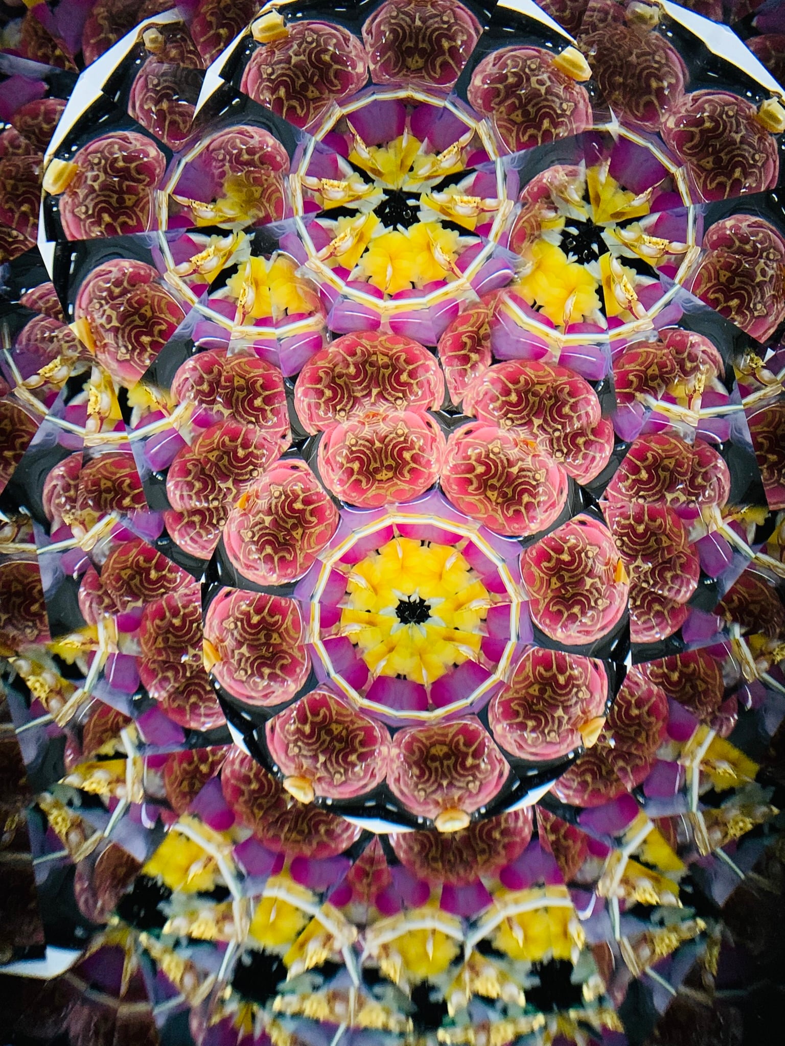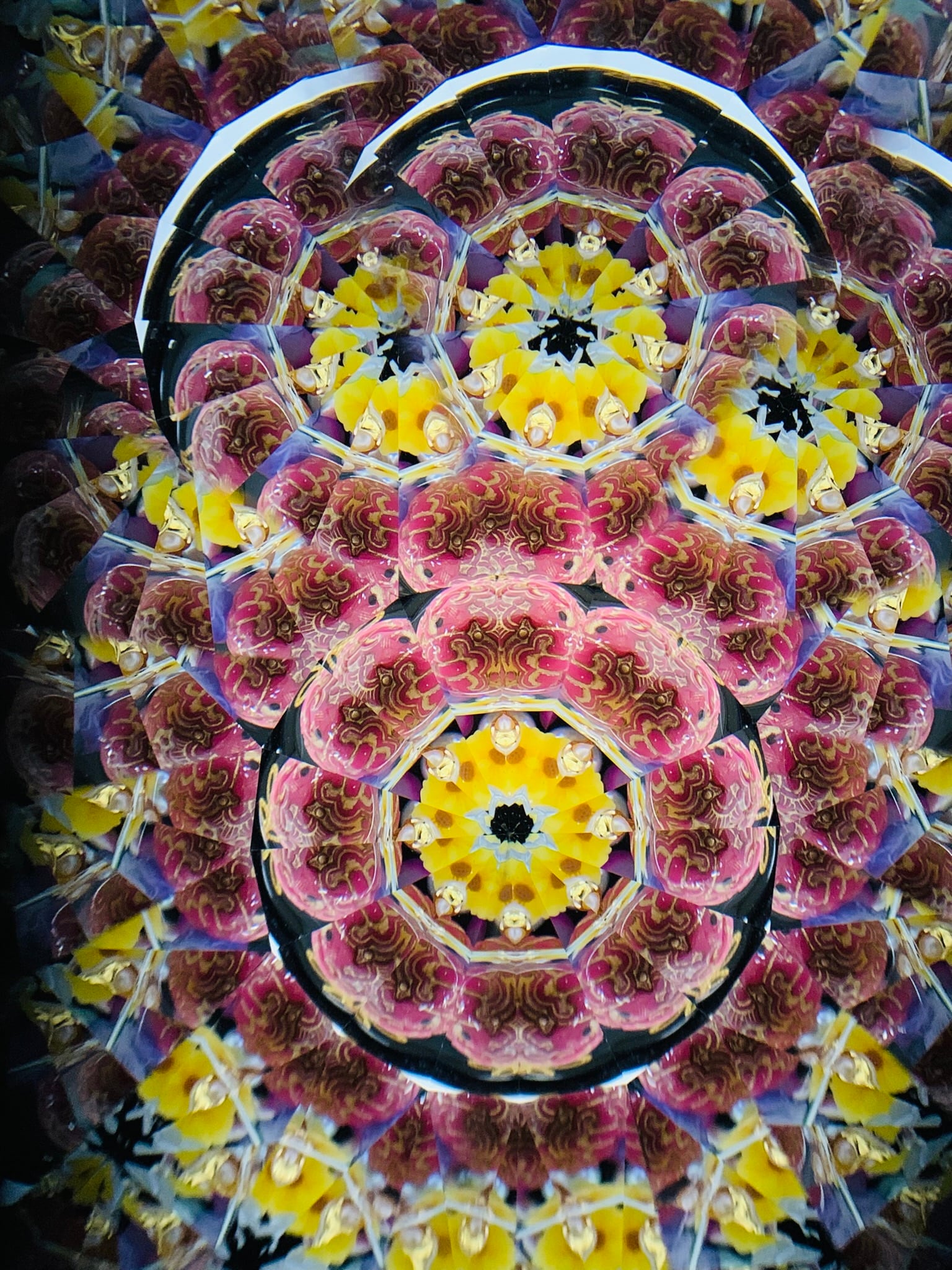 覗いてみるとピンク、紫、赤、黄、金色等の