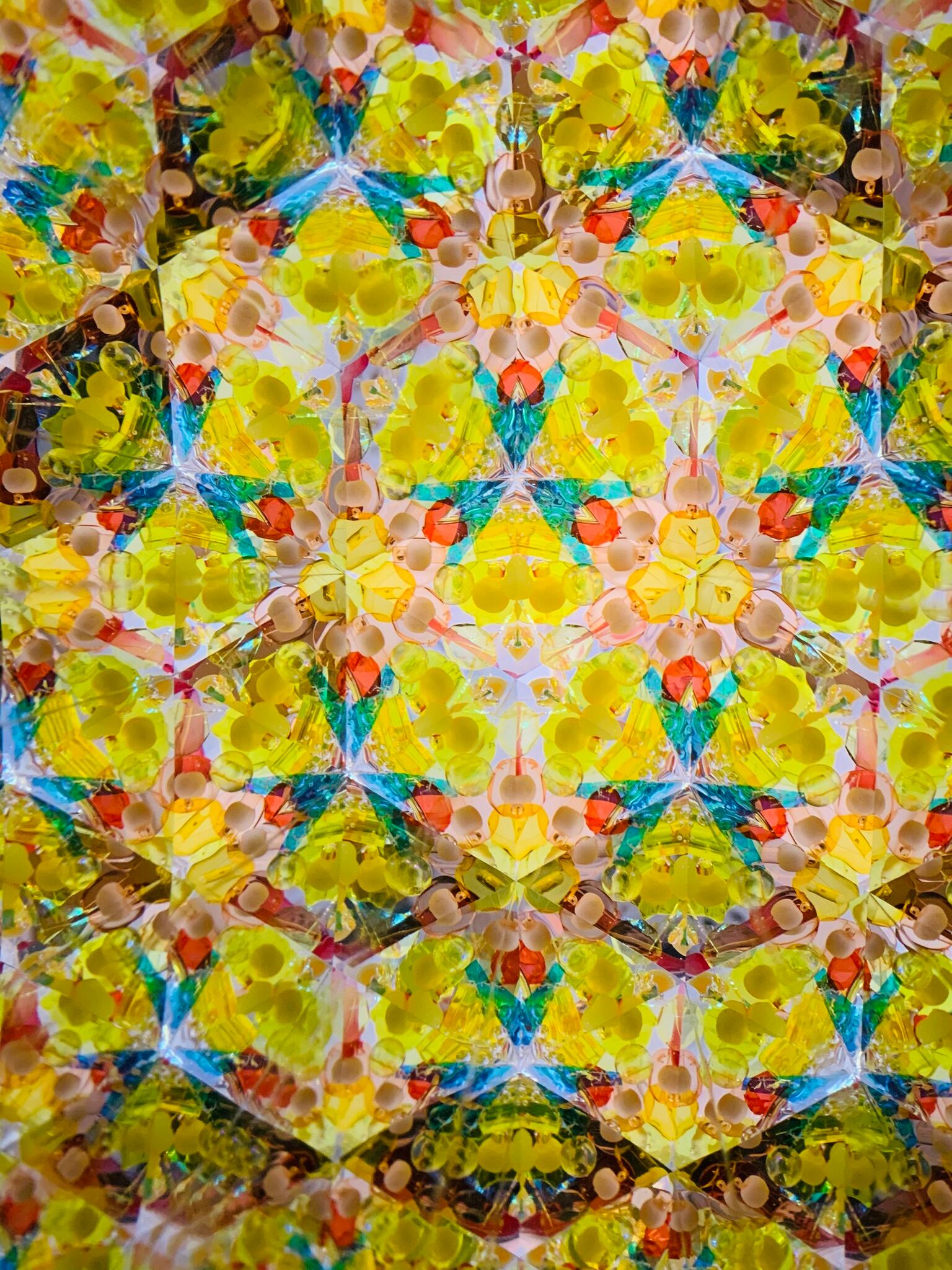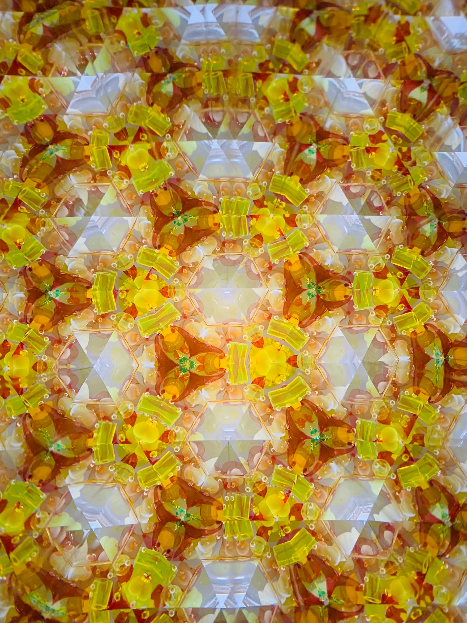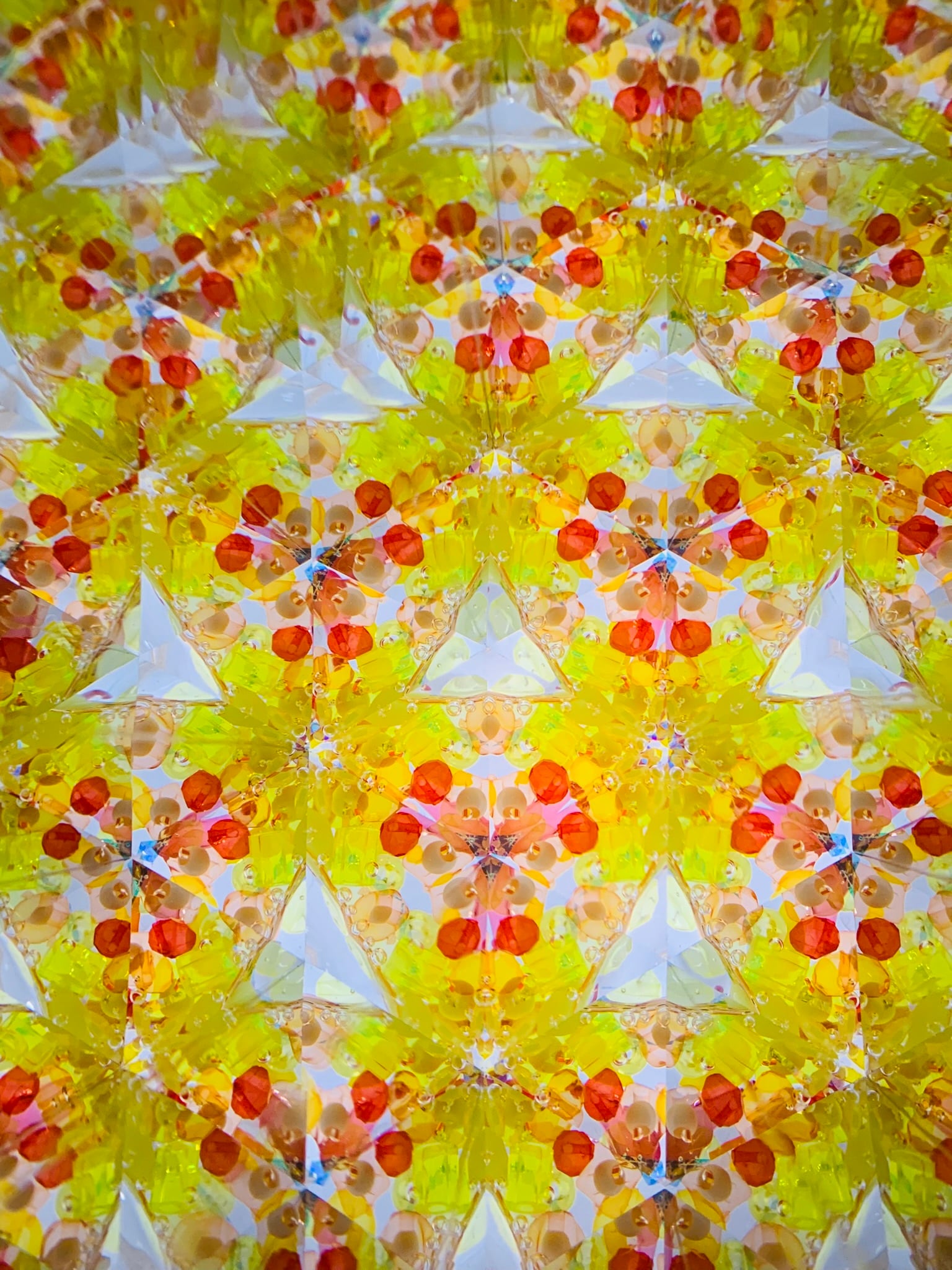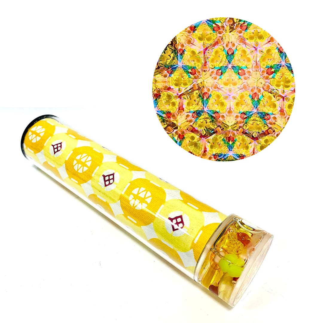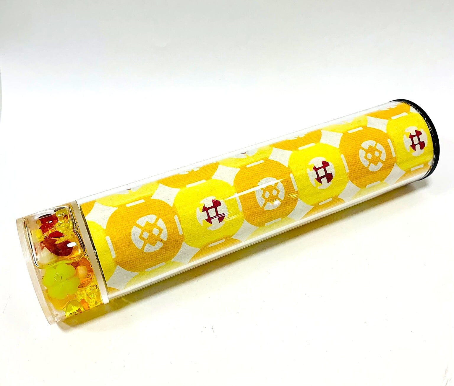 万華鏡内部は鮮やかな黄色をメインに差し色に赤色が