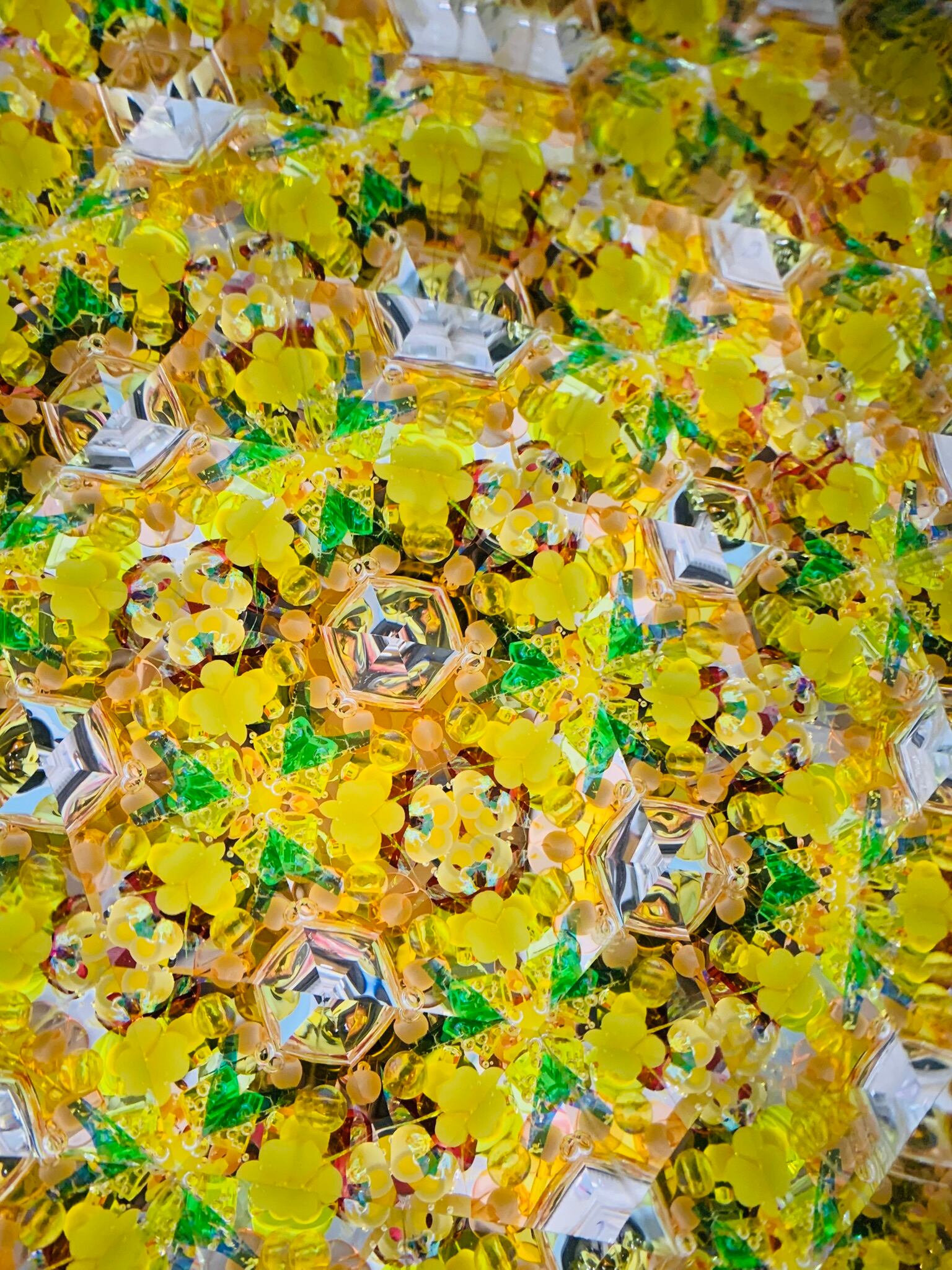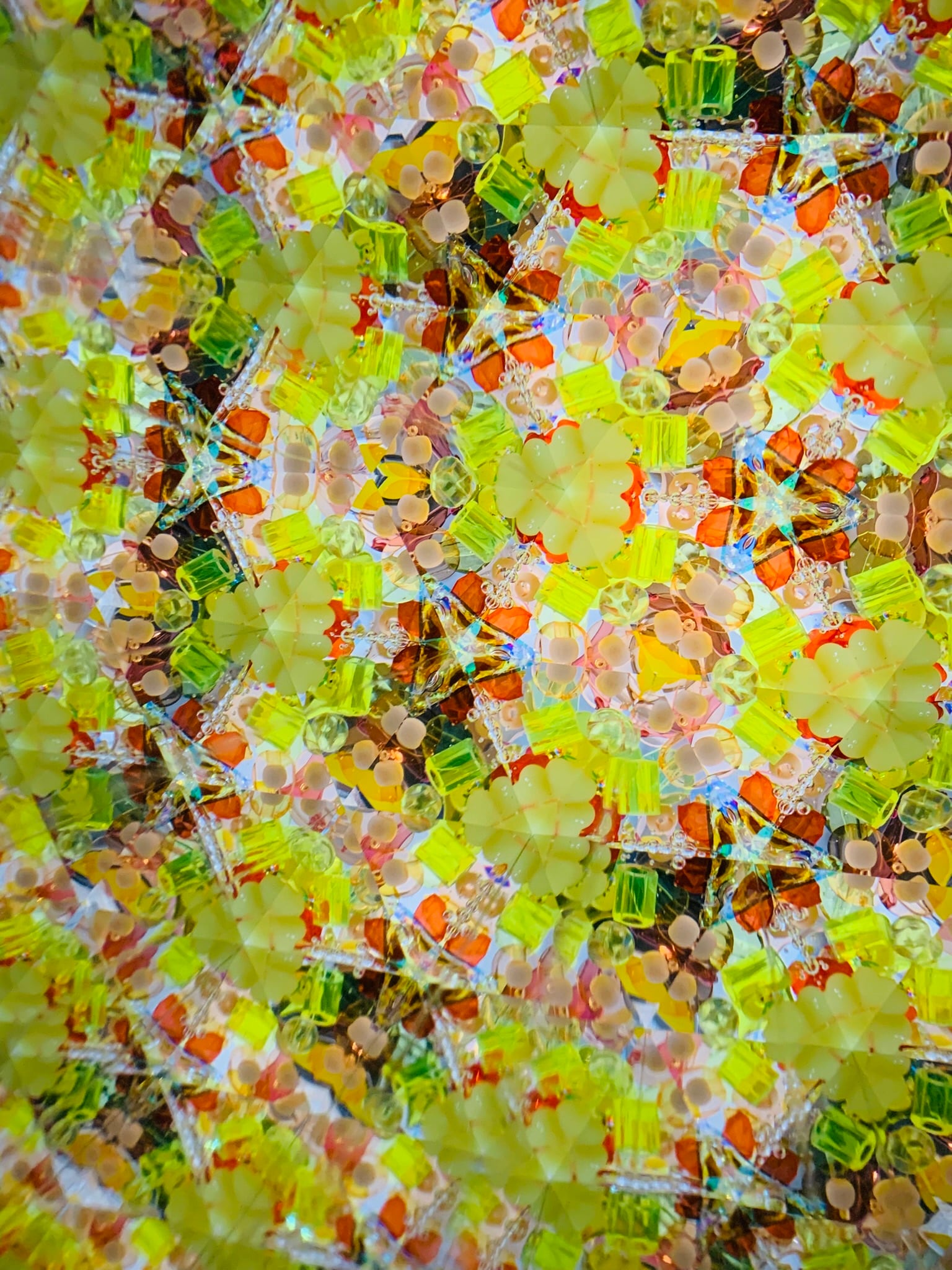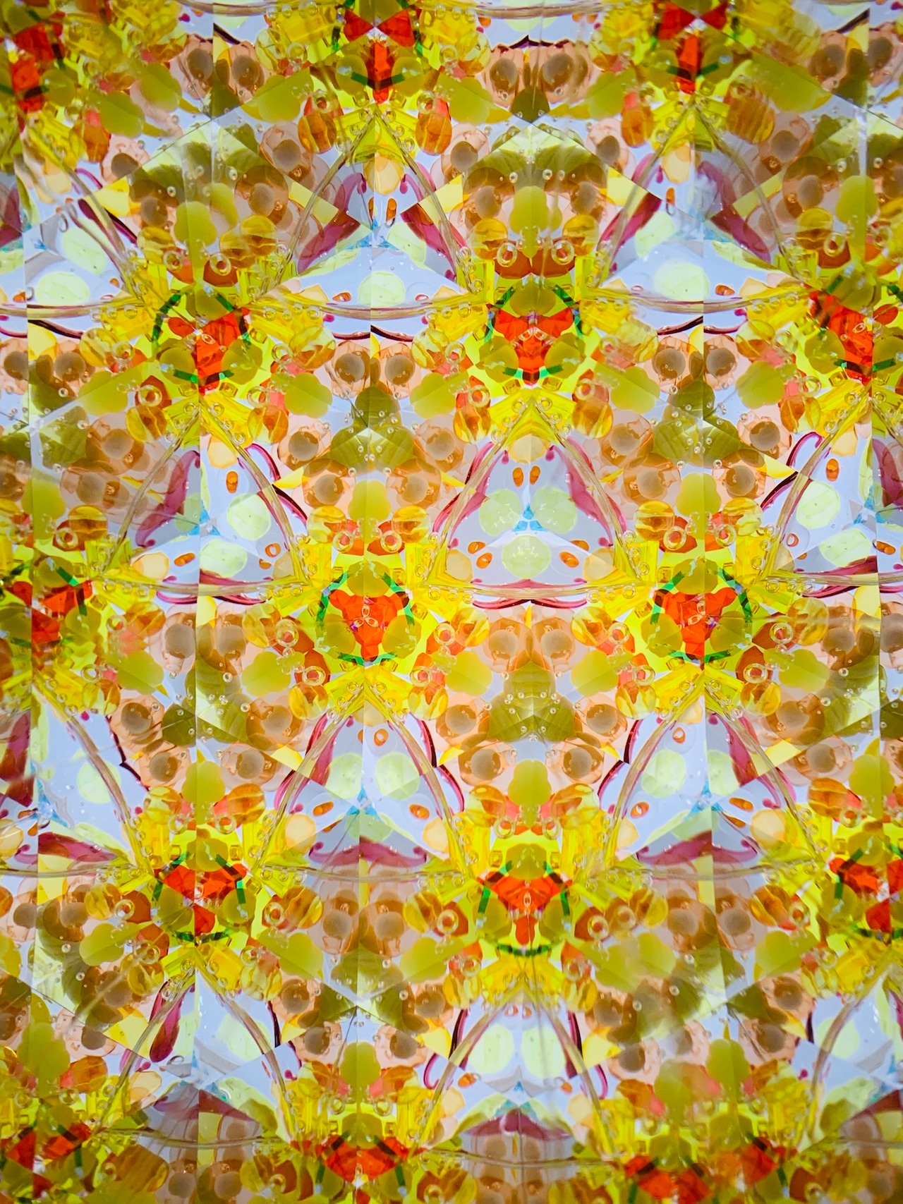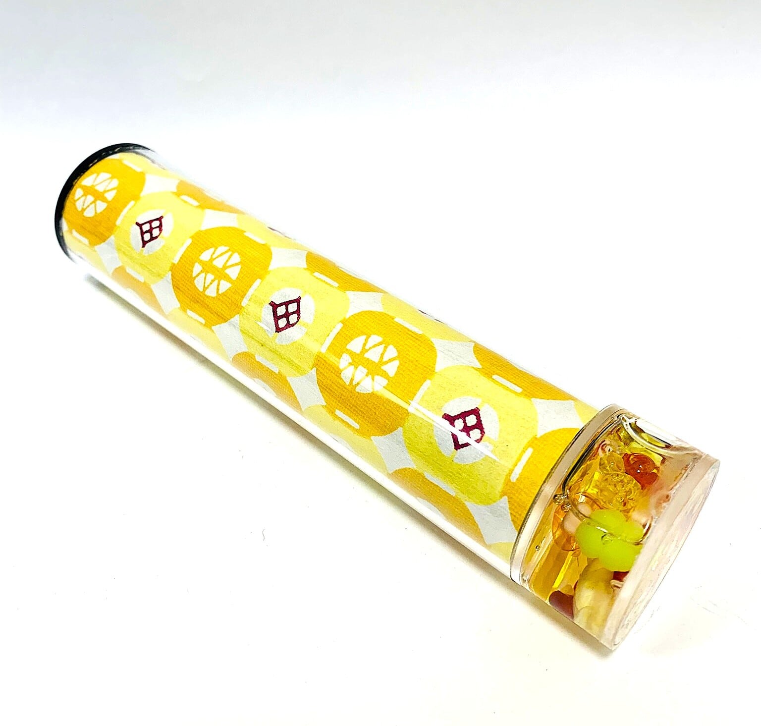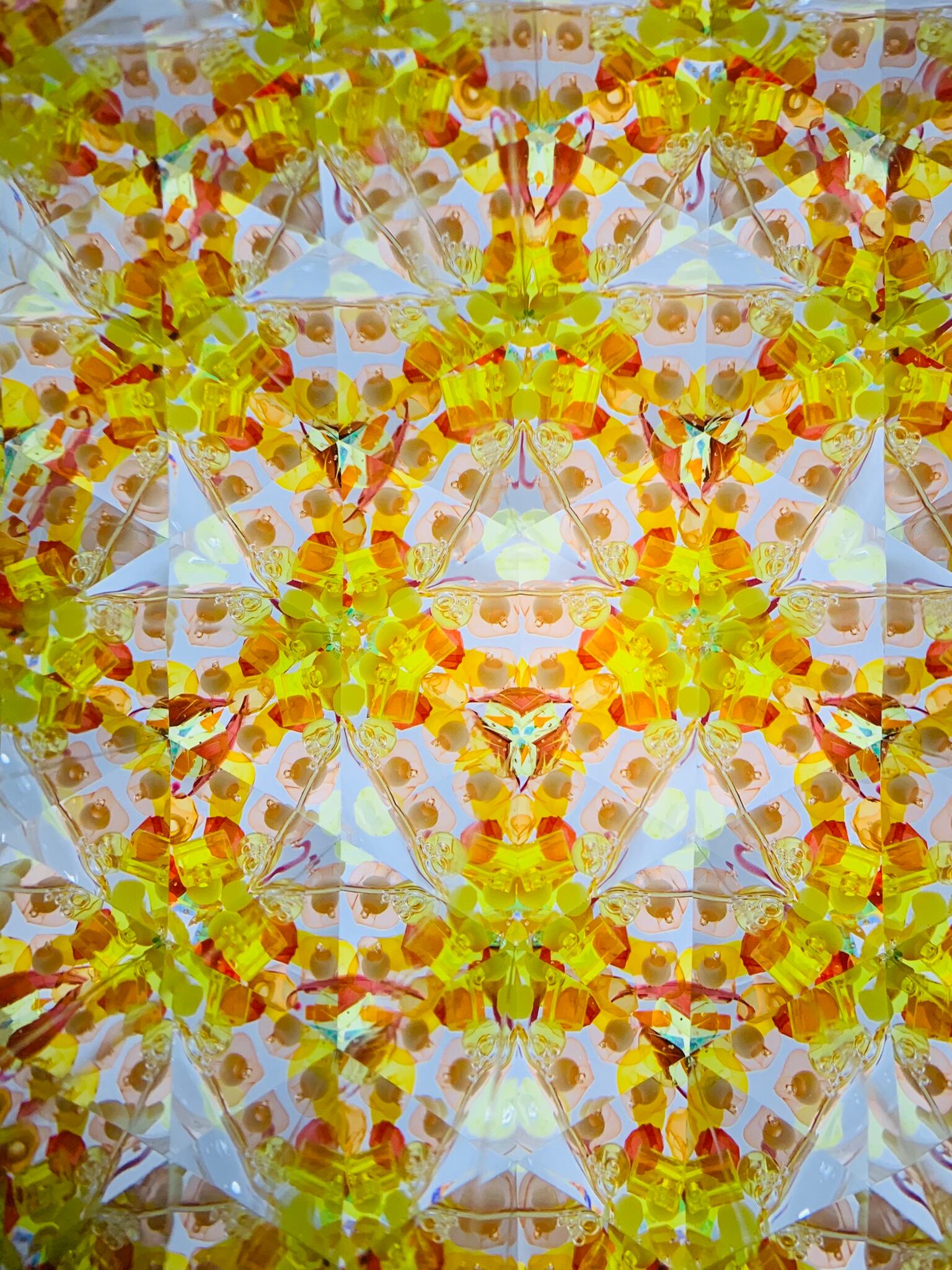 万華鏡内部は鮮やかな黄色をメインに差し色に赤色が