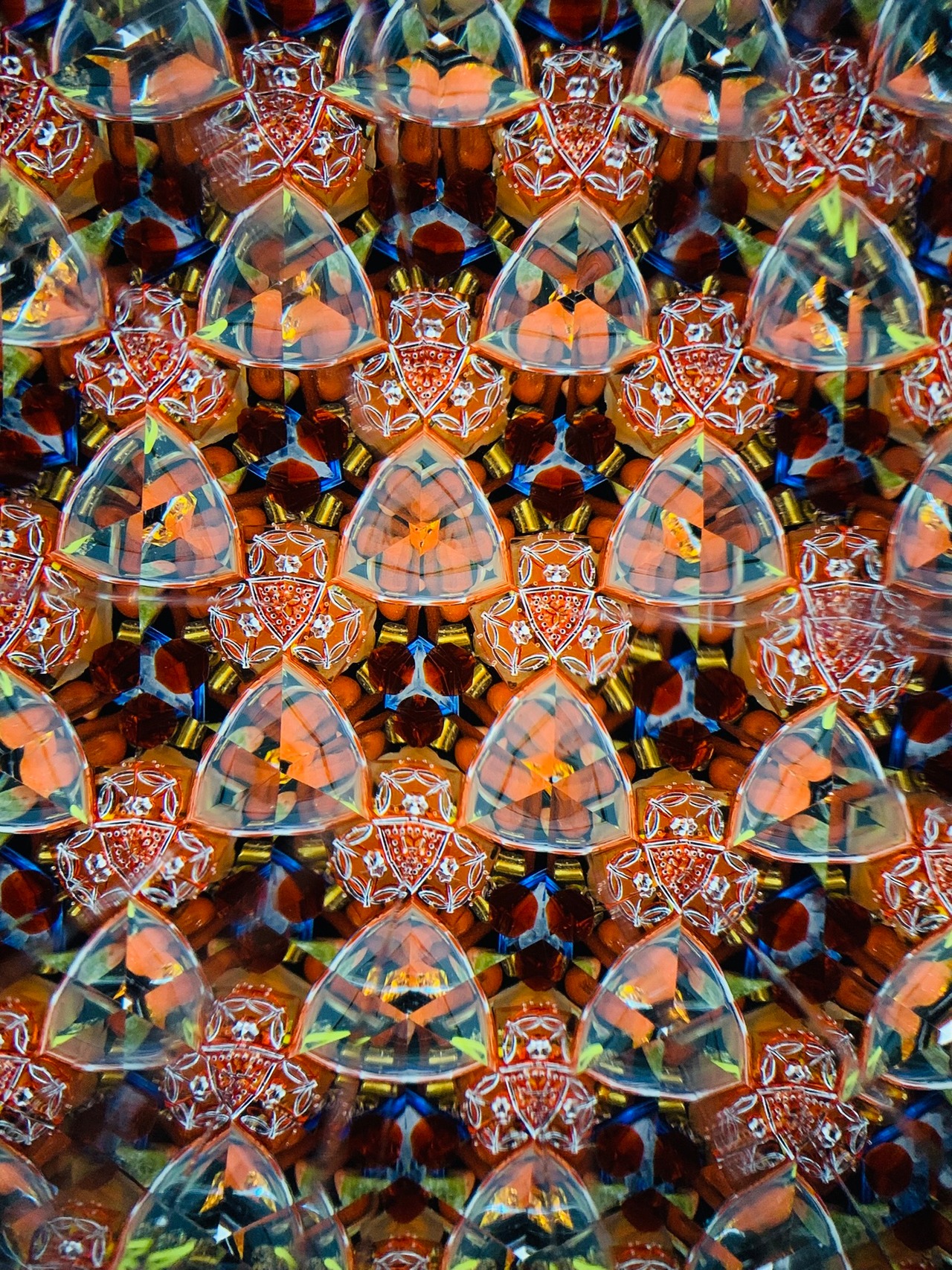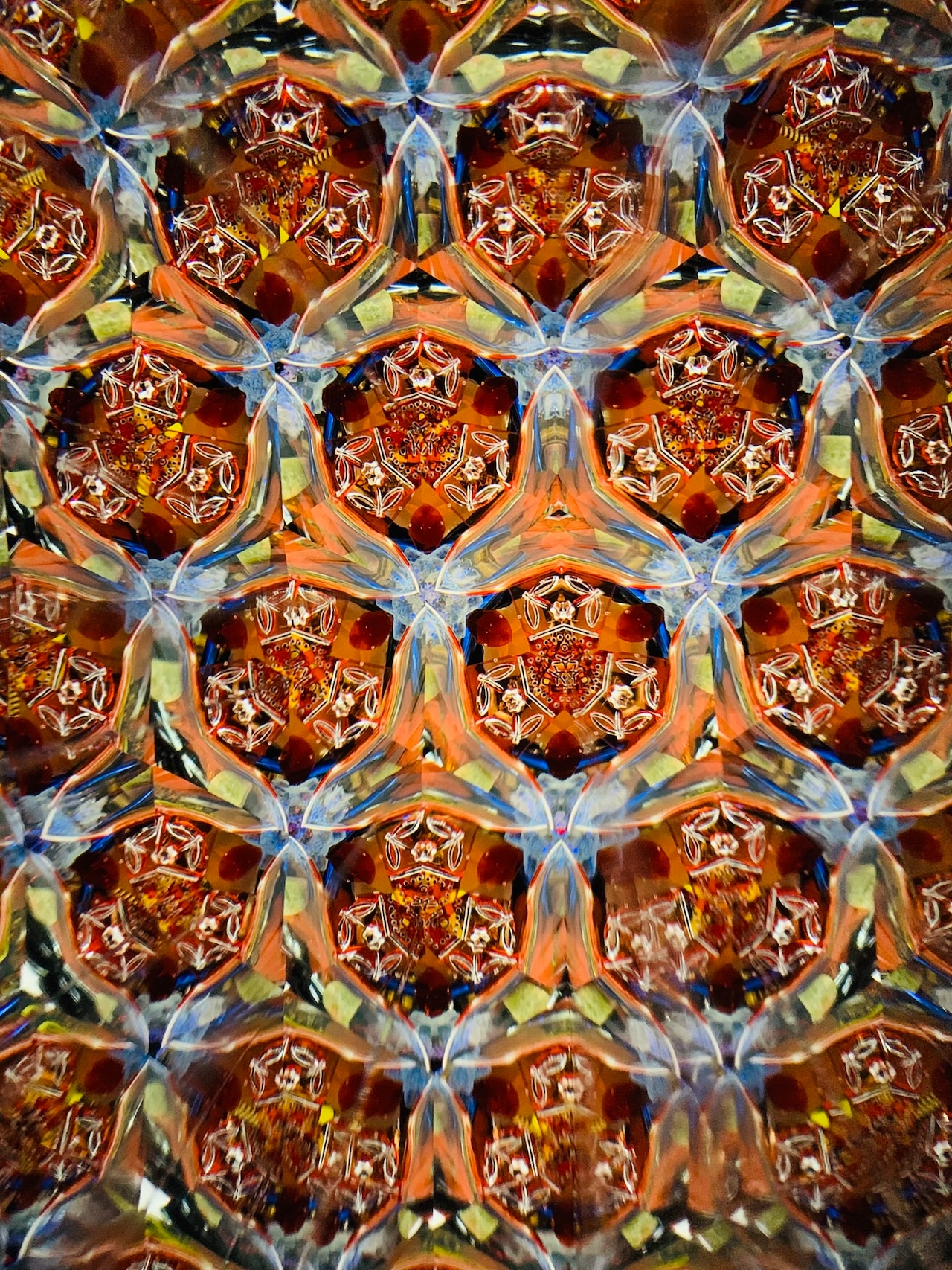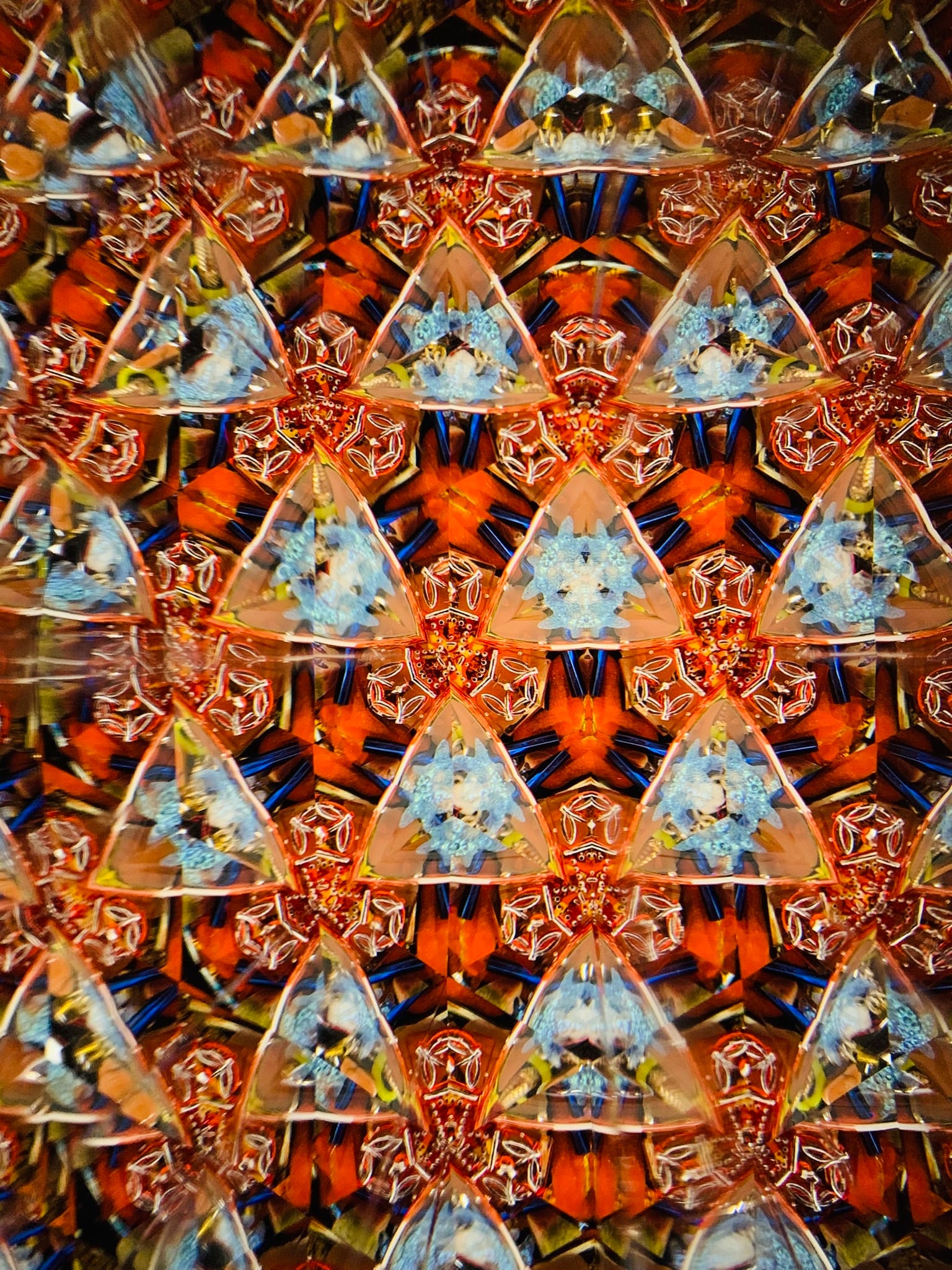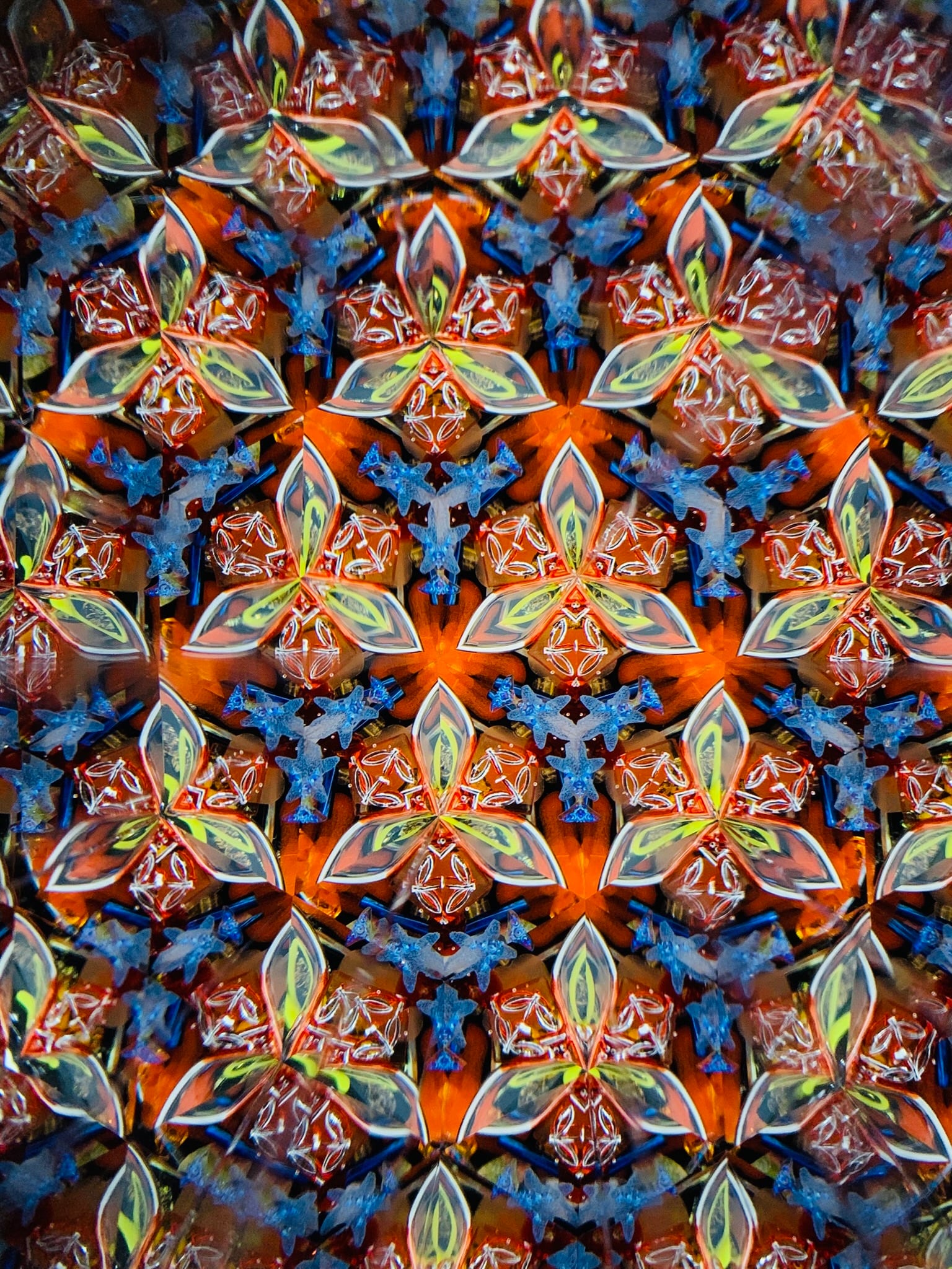 赤、オレンジ、黄色、青色の模様がキラキラと変わっていく