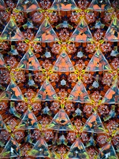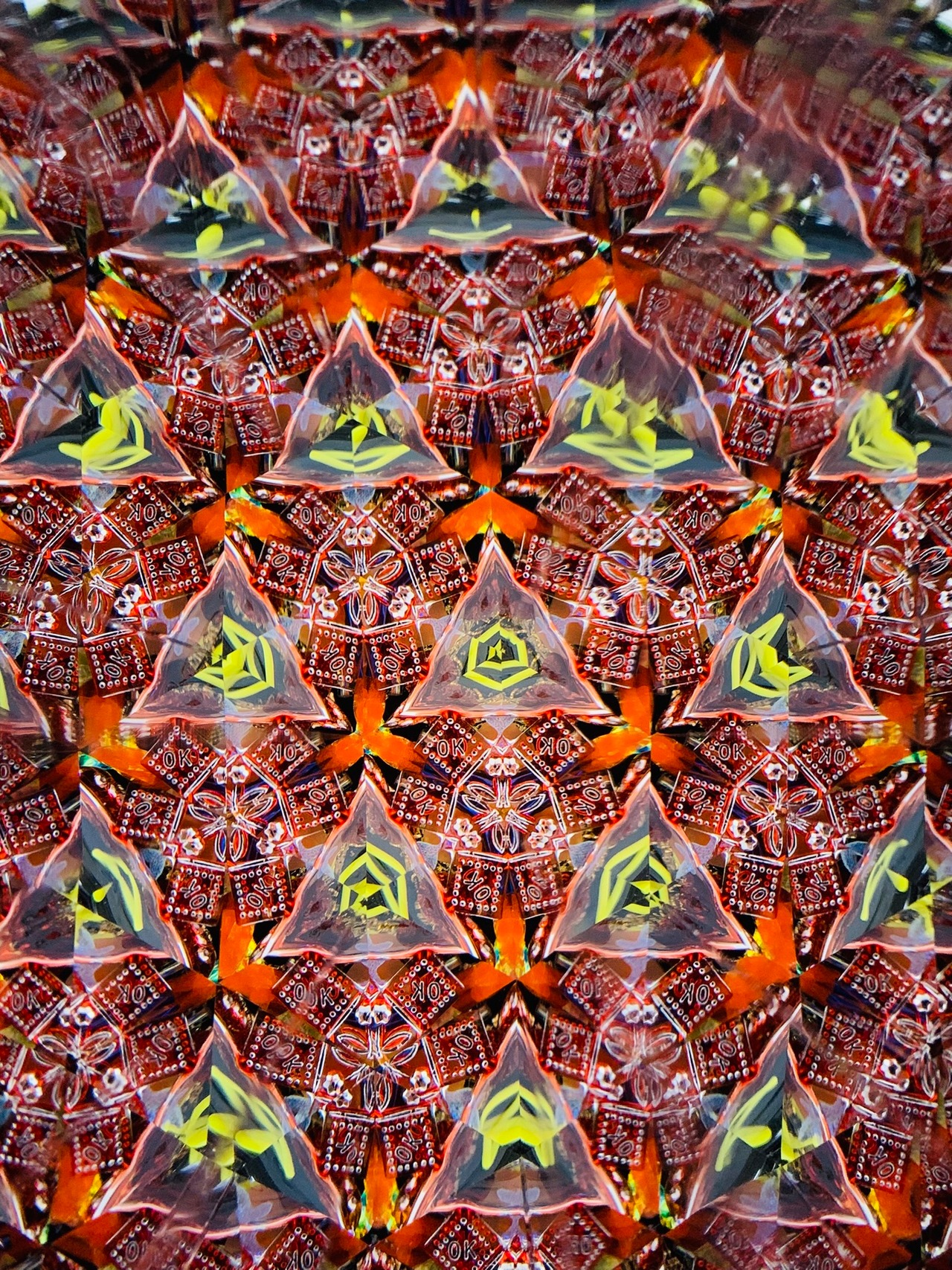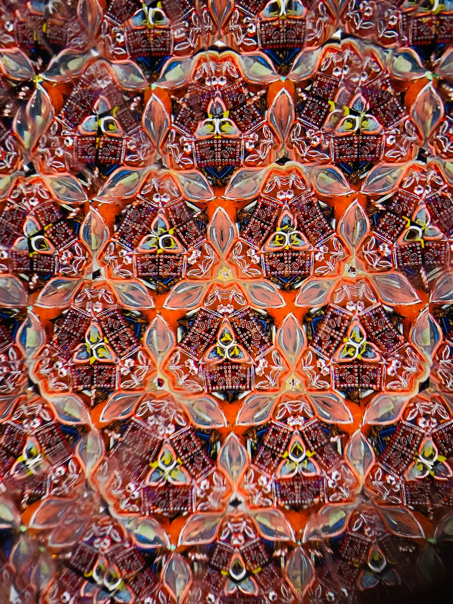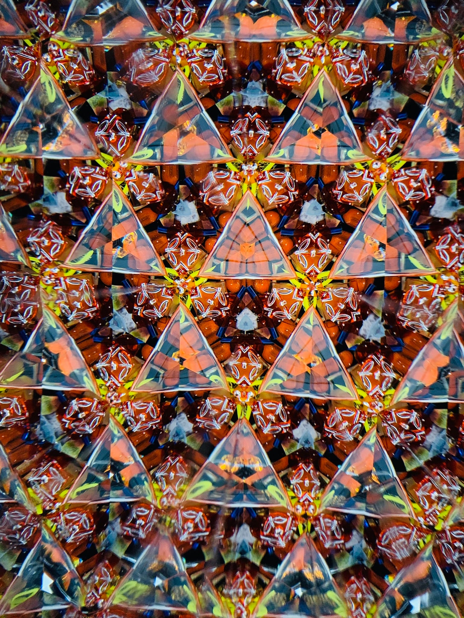 赤、オレンジ、黄色、青色の模様がキラキラと変わっていく