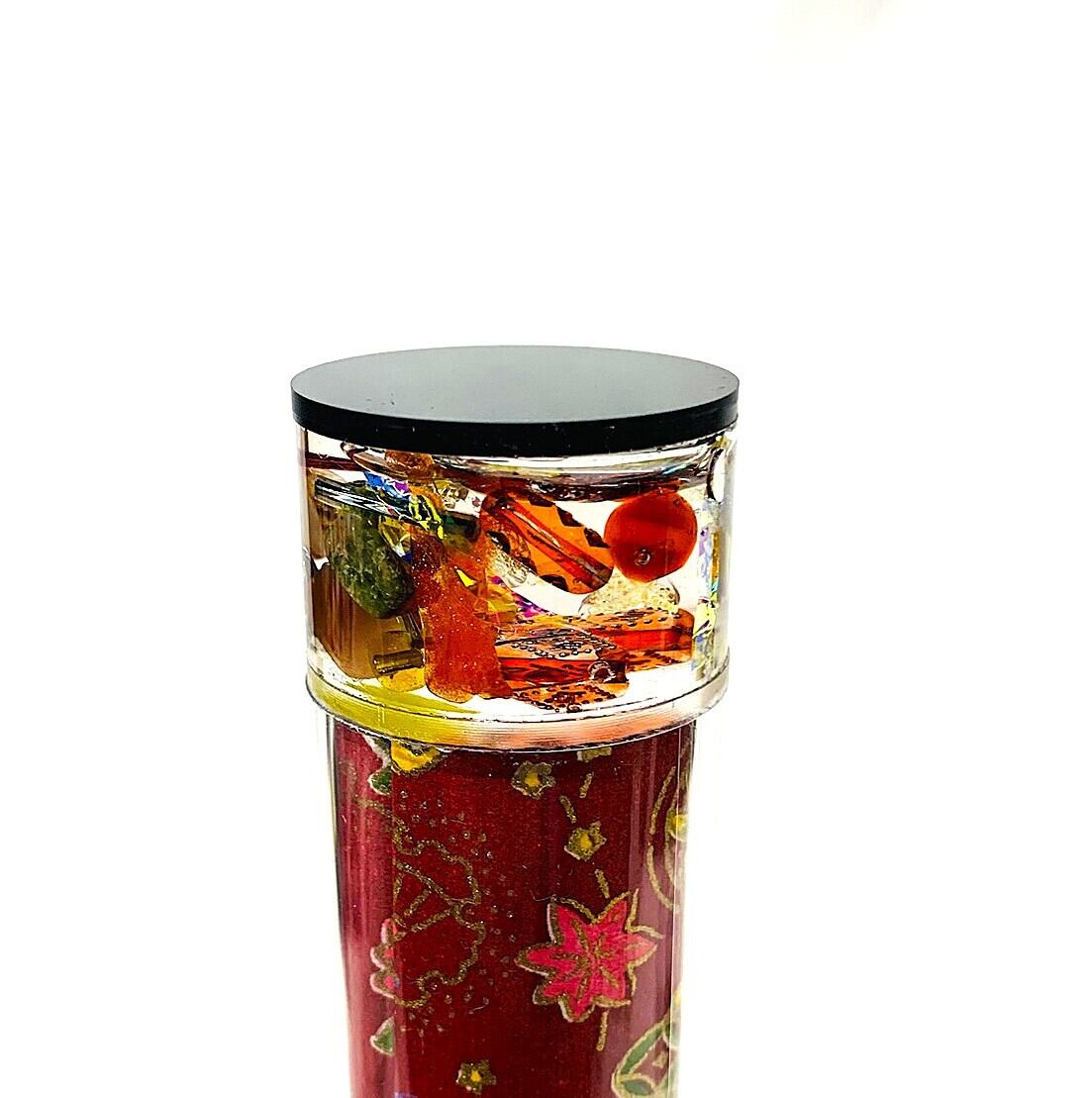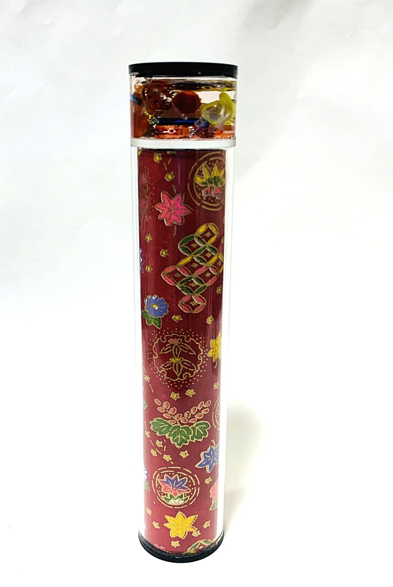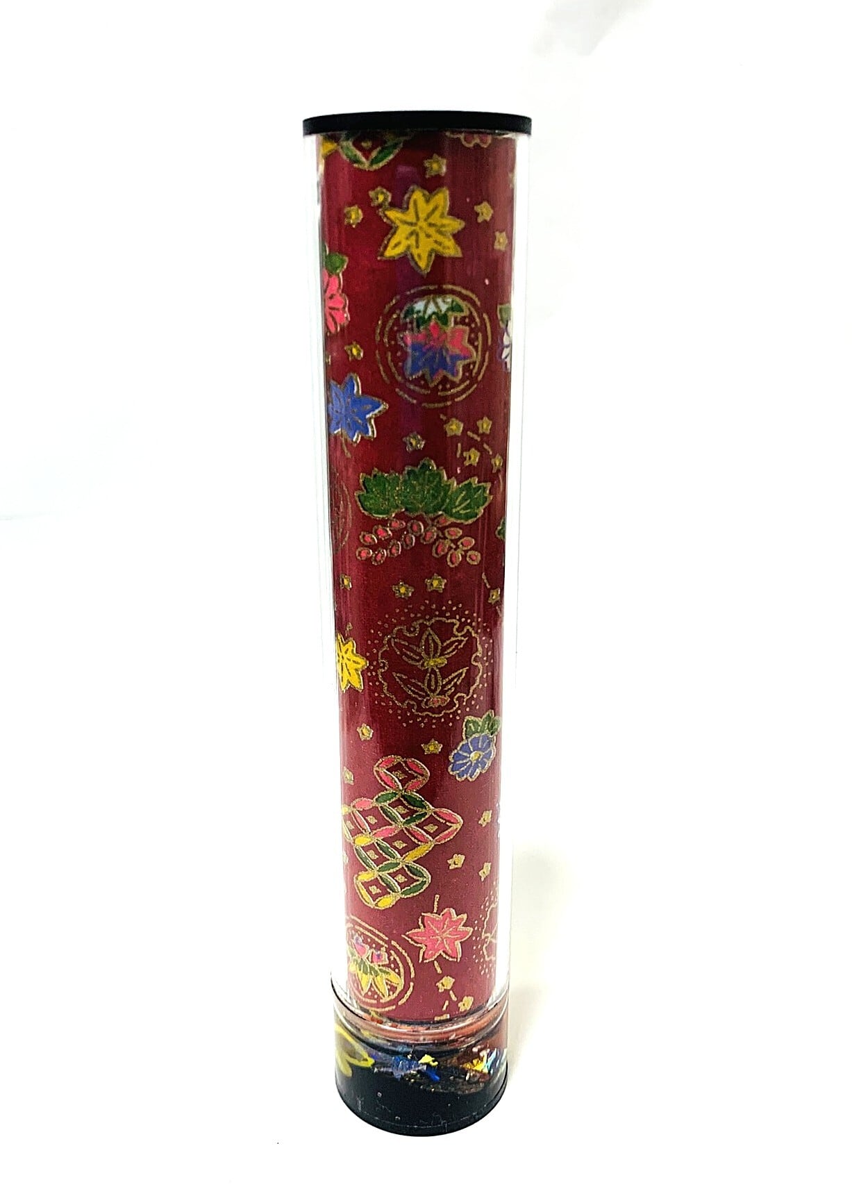 筒部分には透明なアクリル板の下に赤地にお花の和柄の和紙が