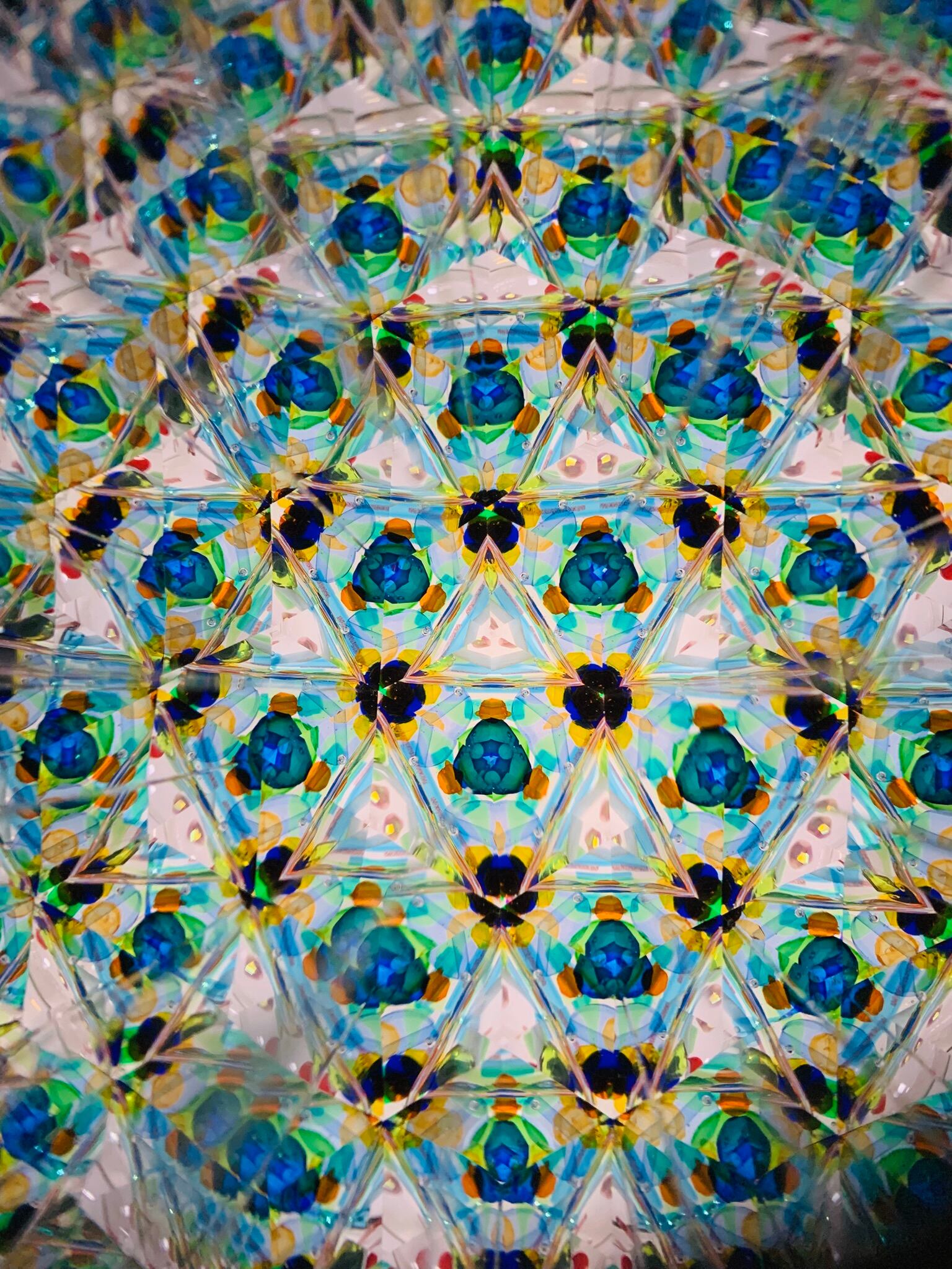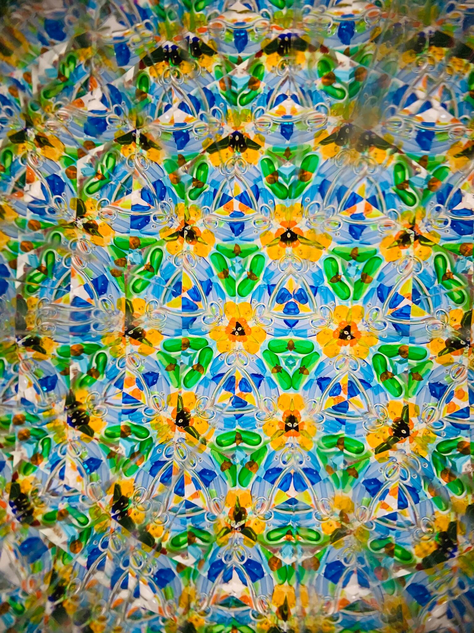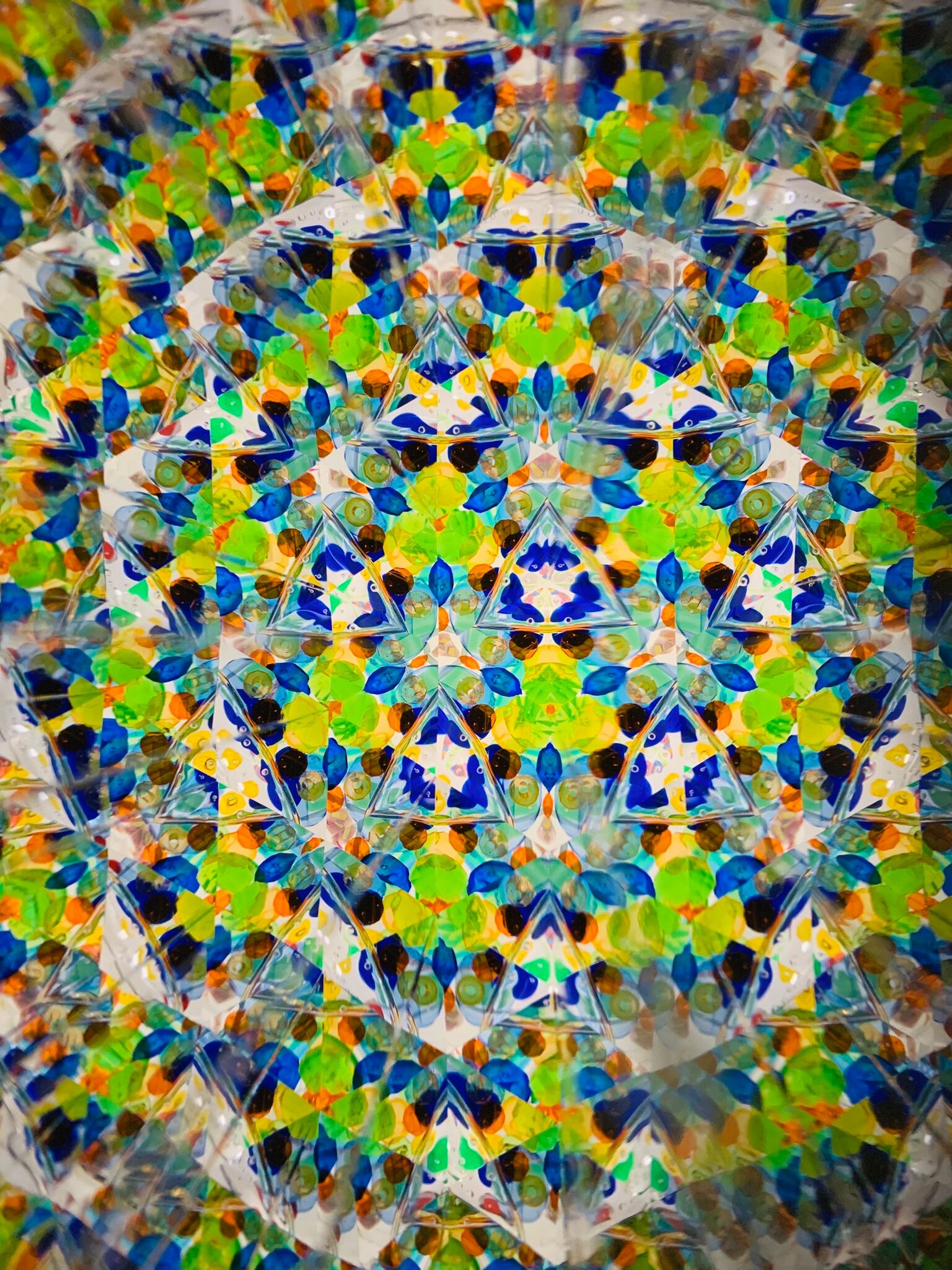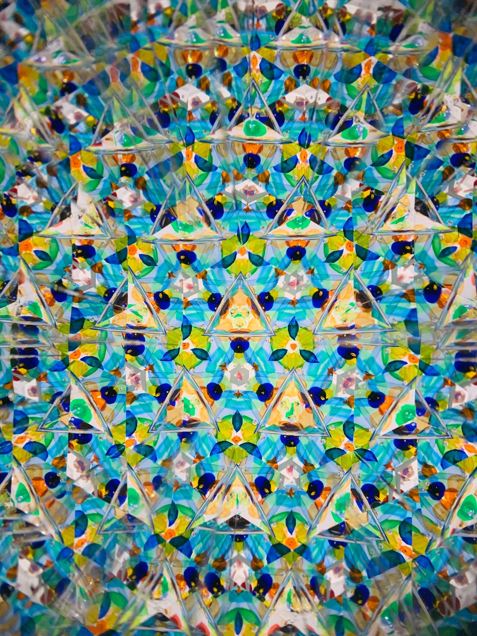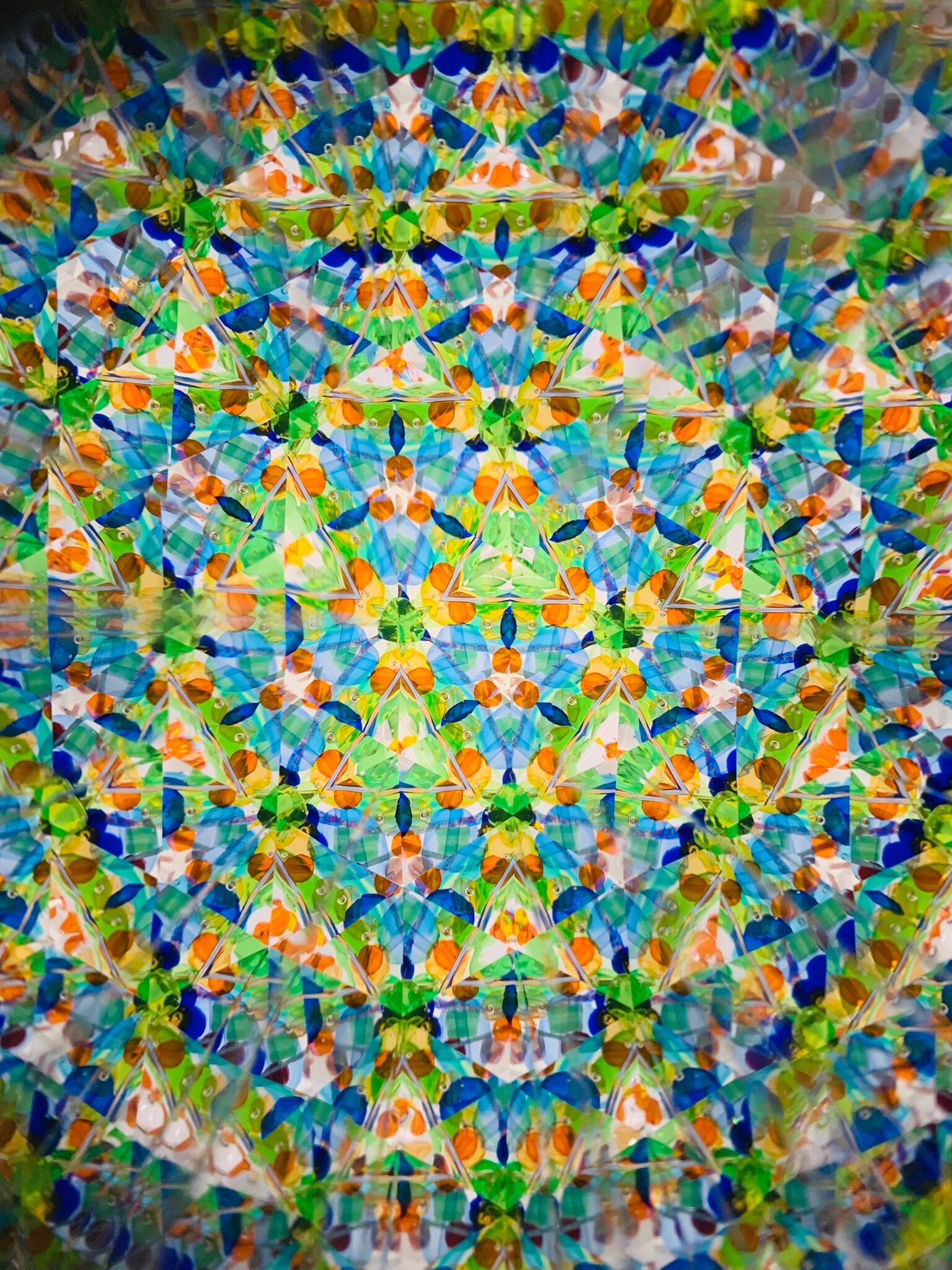 赤、オレンジ、黄色、青色の模様がキラキラと変わっていく