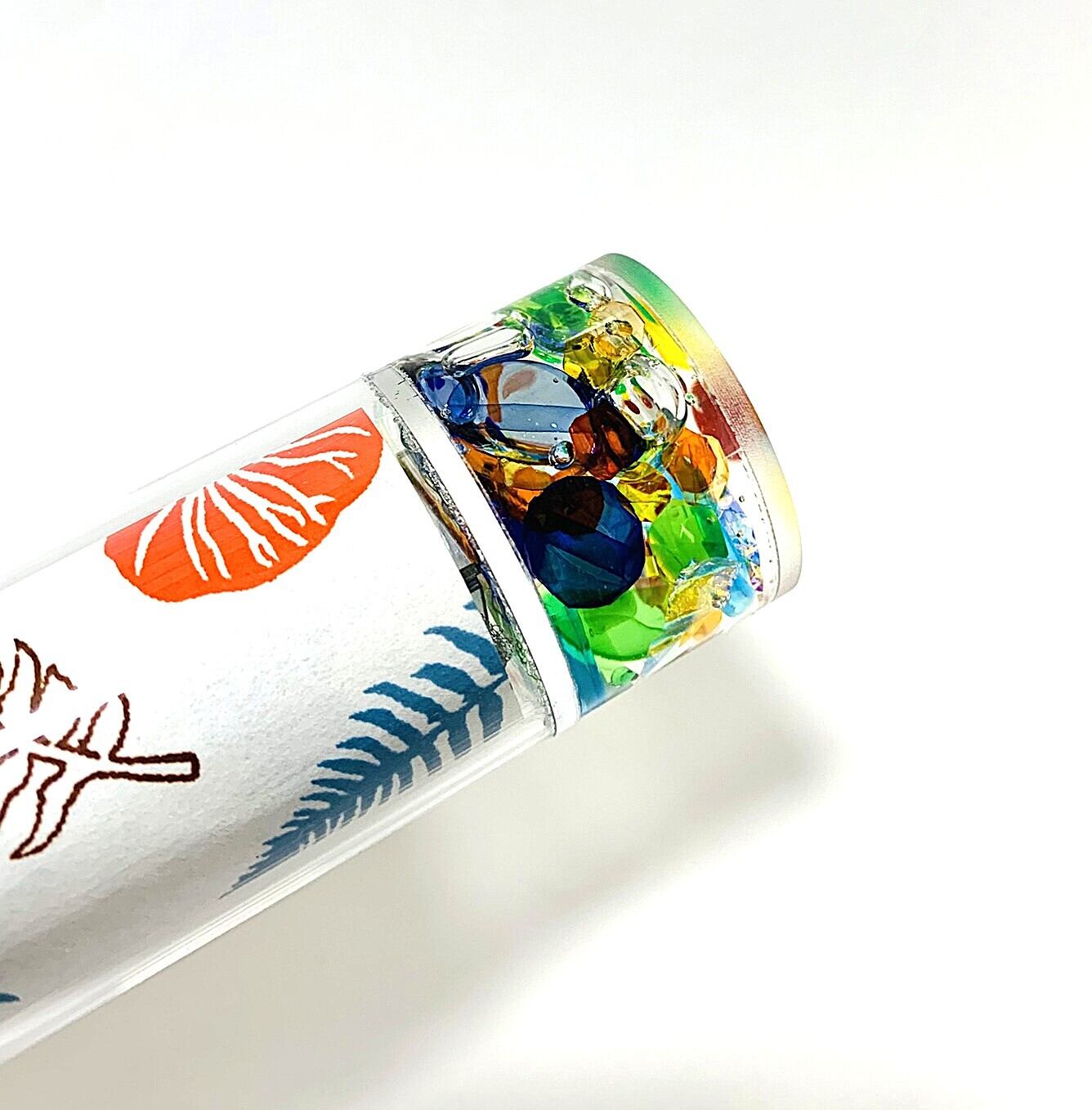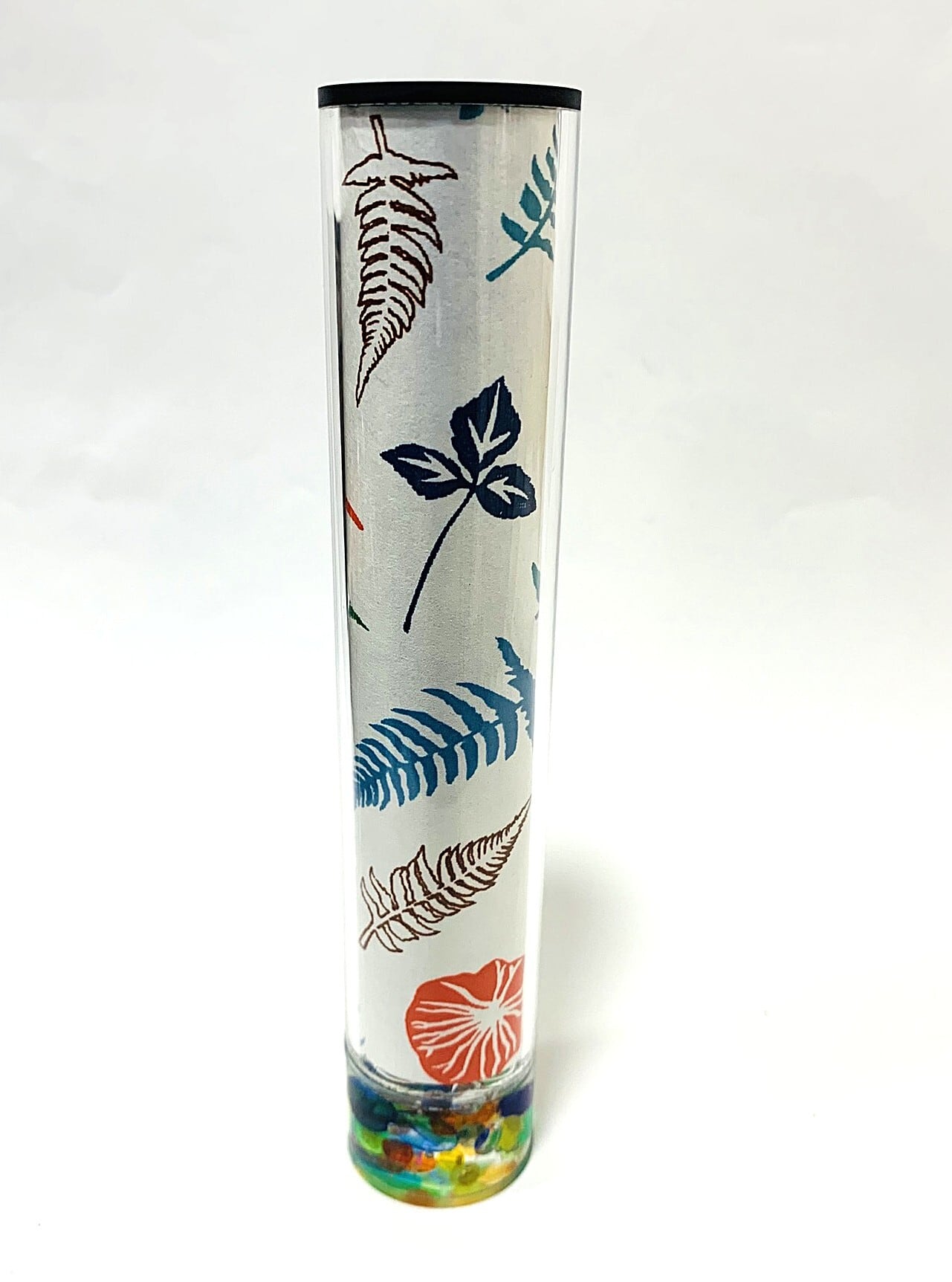 筒部分には透明なアクリル板の下に白地にシダ植物や花などボタニカル柄の和紙が