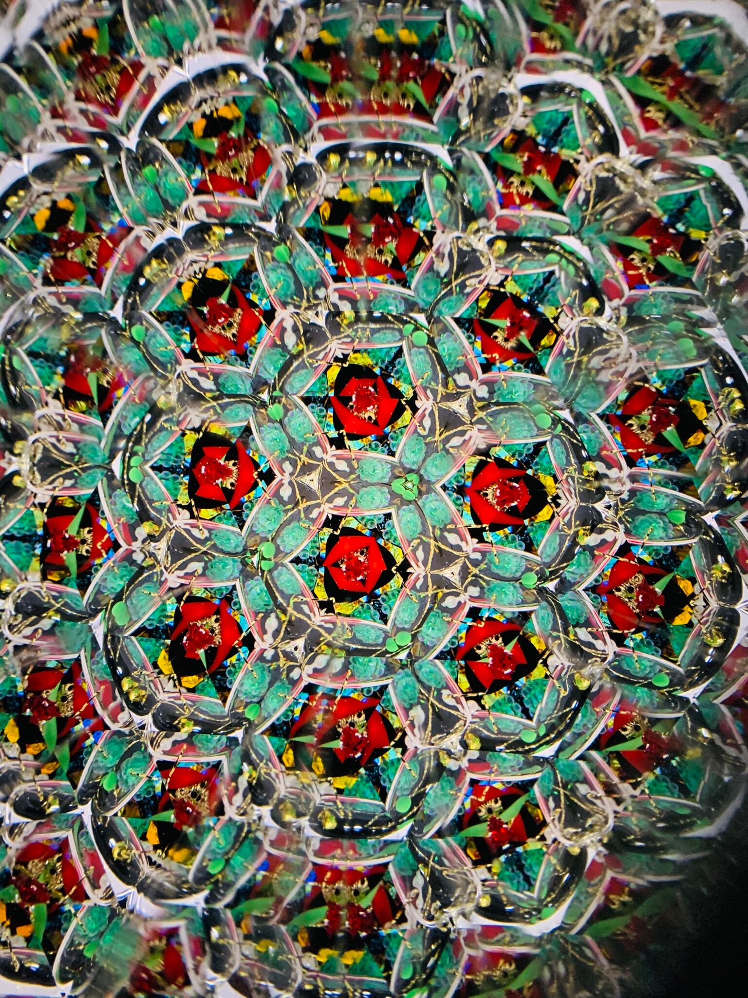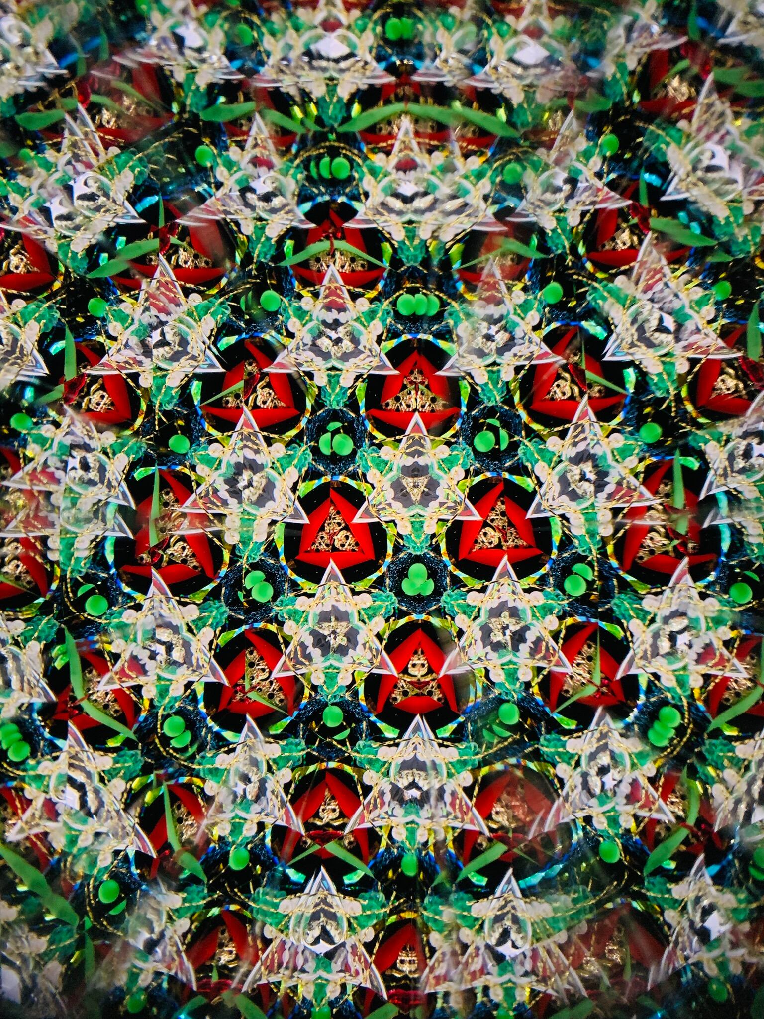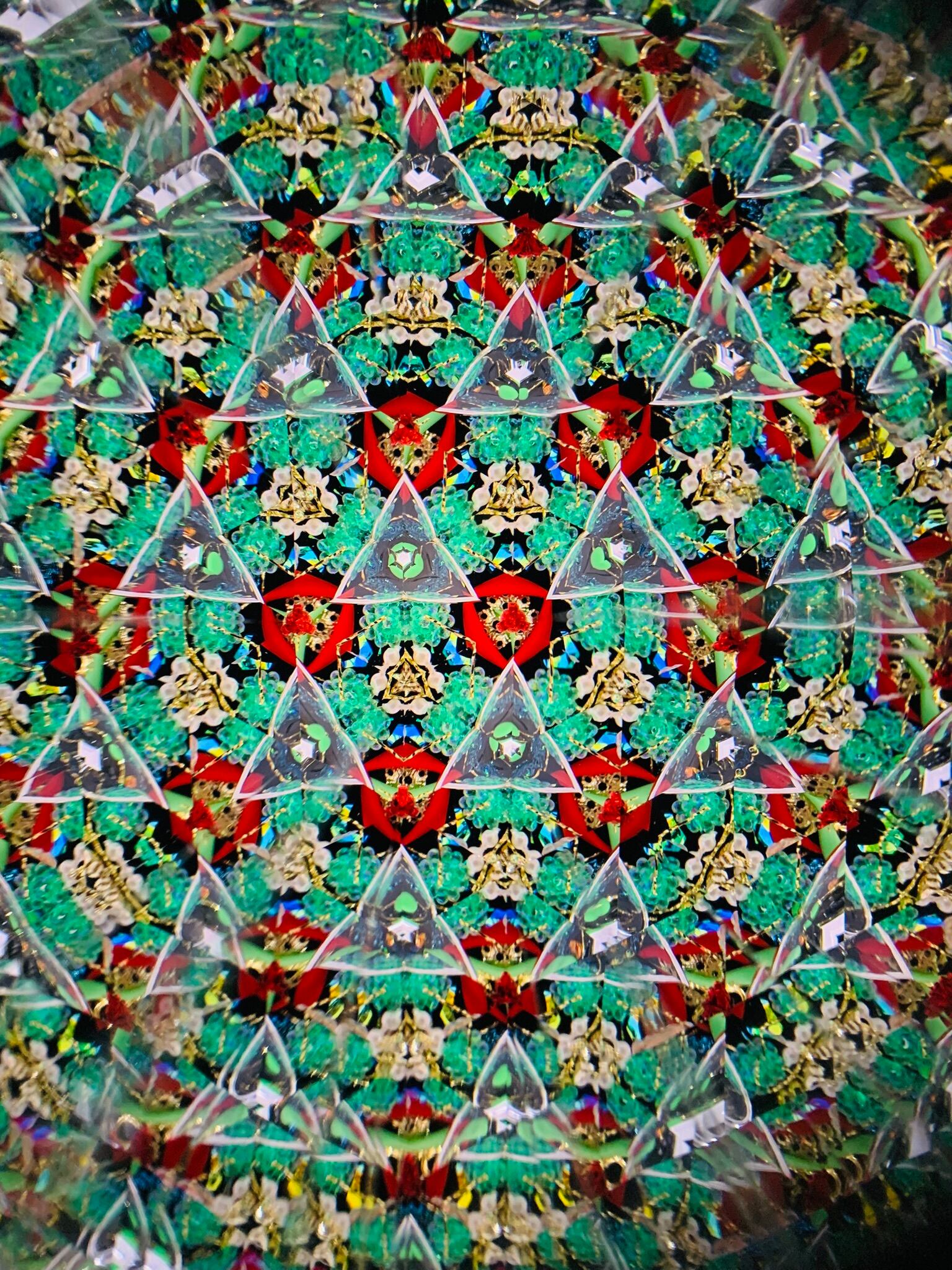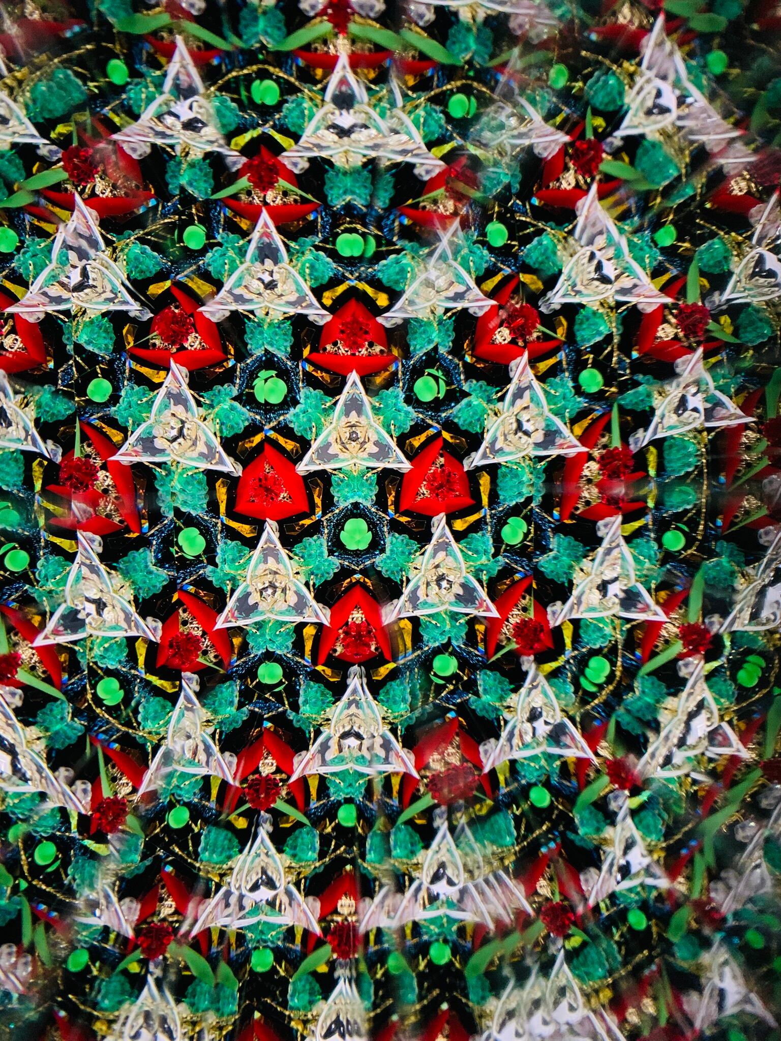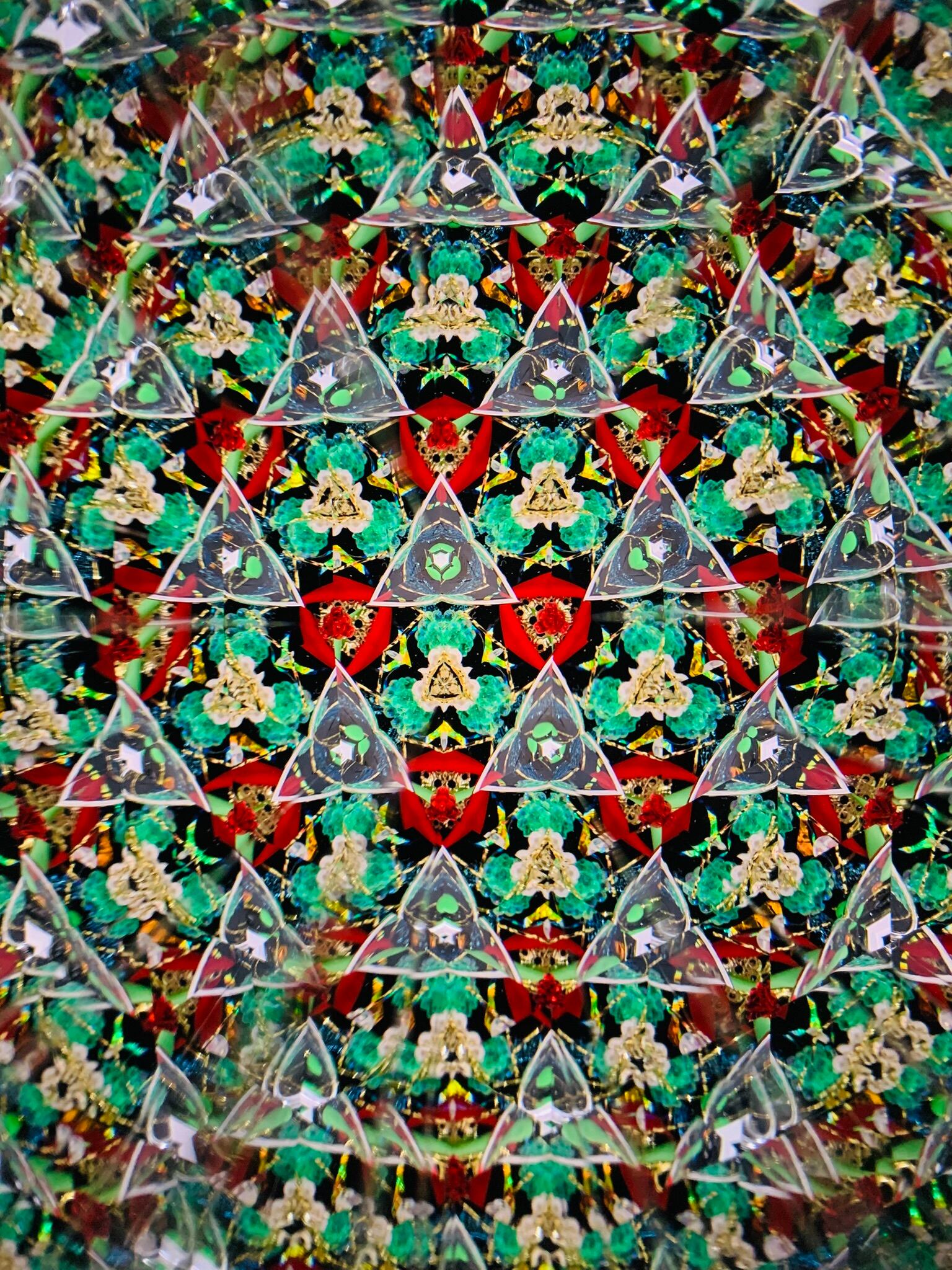 赤、金、緑色の模様がキラキラと変わっていく
