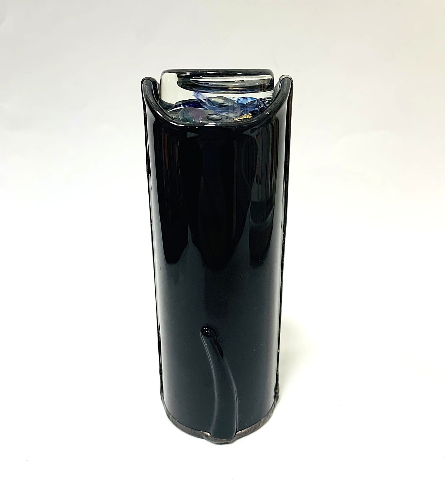 筒部分にガラスが使用され、黒猫をモチーフにしたかわいらしい万華鏡です。後ろにはしっぽもあります。 繊細な飾りはんだがのぞき口にあしらわれており、手に取るたびにその美しさに心を奪われます。