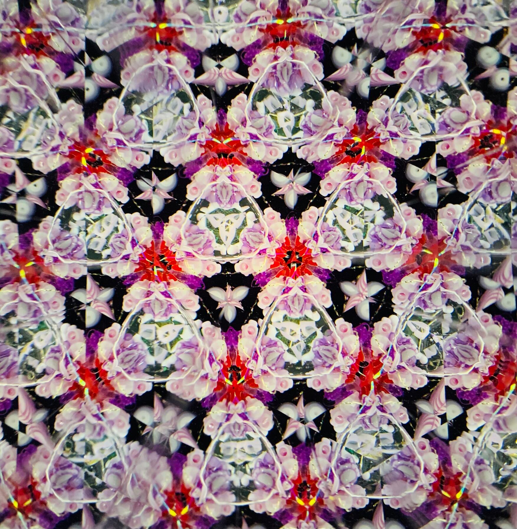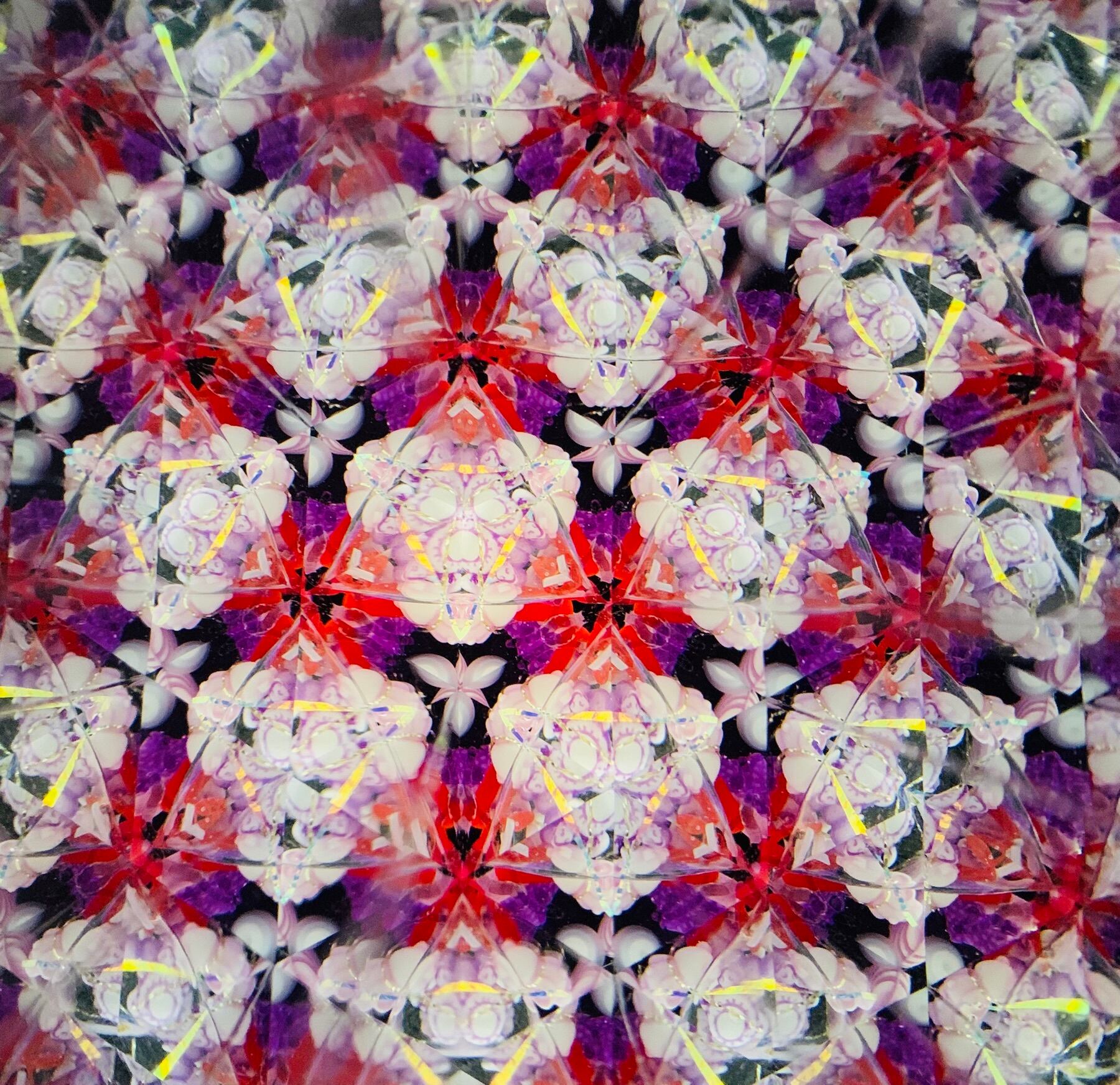 万華鏡内部は紫・赤などの色をメインに