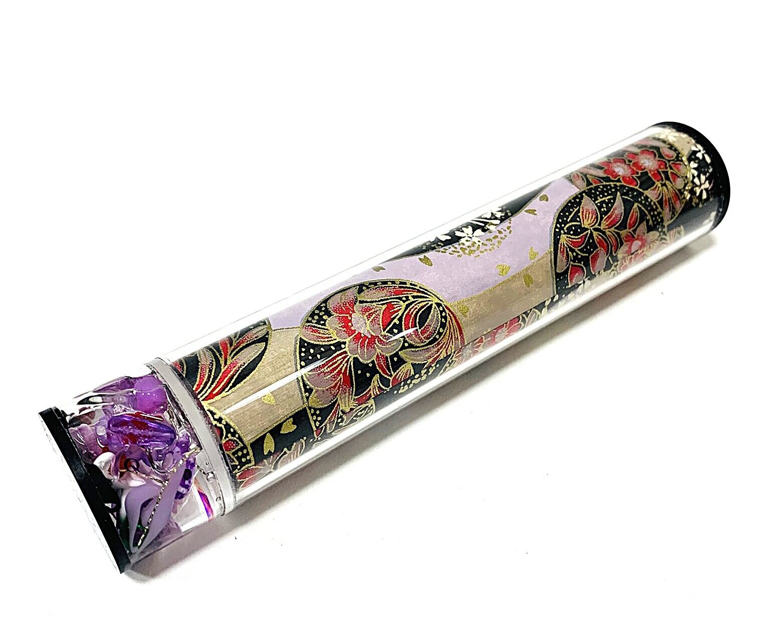 筒部分には透明なアクリル板の下に花柄の和紙が